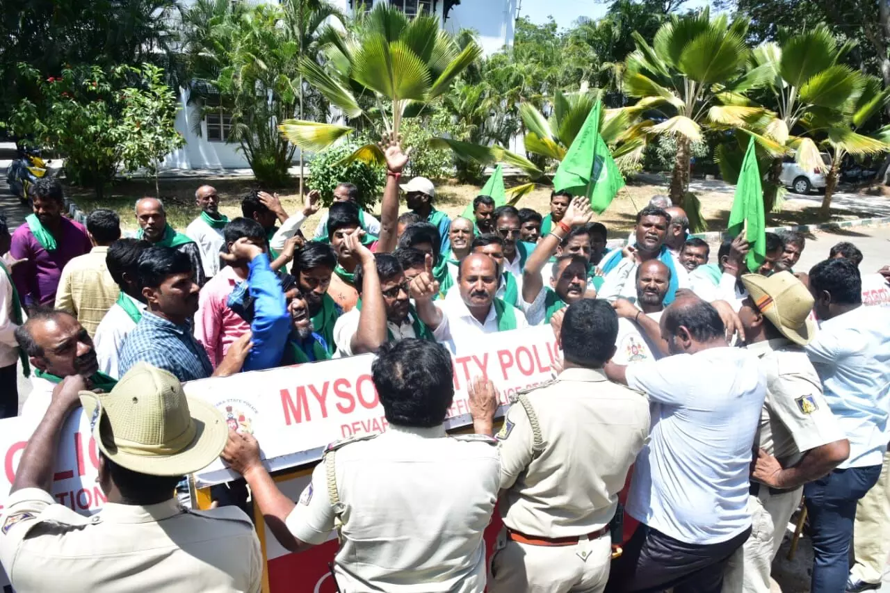 ರಾಜ್ಯ ಕಬ್ಬು ಬೆಳೆಗಾರರ ಸಂಘದ ವತಿಯಿಂದ ನಗರದ ಜಲದರ್ಶಿನಿ ಅತಿಥಿಗೃಹದ ಆವರಣದಲ್ಲಿರುವ ಸಂಸದ ಪ್ರತಾಪ್ ಸಿಂಹ ಅವರ ಕಚೇರಿಗೆ ಮುತ್ತಿಗೆ ಹಾಕಲು ಯತ್ನಿಸಿದಾಗ ಪೊಲೀಸರು ಬ್ಯಾರಿಕೇಡ್ ಗಳನ್ನು ಅಡ್ಡ ಹಾಕಿ ತಡೆದರು. ಈ ವೇಳೆ ಪೊಲೀಸರು ಮತ್ತು ರೈತರ ನಡುವೆ ಮಾತಿನ ಚಕಮಕಿ ನಡೆಯಿತು.