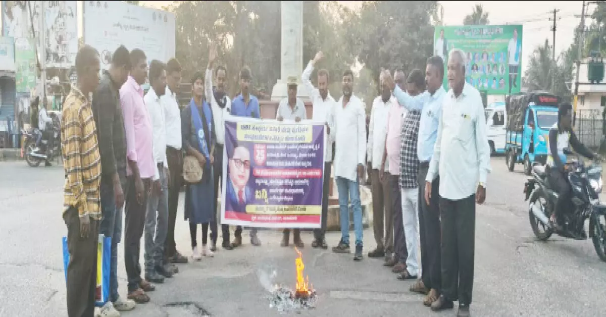 ಹುಣಸೂರು : ಡಾ.ಬಿ.ಆರ್.ಅಂಬೇಡ್ಕರ್ ಅವರು ಮನುಸ್ಮೃತಿಯನ್ನು ದಹಿಸಿದ ದಿನದ ಅಂಗವಾಗಿ ದಸಂಸ ಮತ್ತು ಪ್ರಗತಿಪರ ಸಂಘಟನೆಗಳ ವತಿಯಿಂದ ನಗರ ಸಂವಿಧಾನ ವೃತ್ತದಲ್ಲಿ ಮನುಸ್ಮೃತಿಯನ್ನು ದಹಿಸಲಾಯಿತು.
