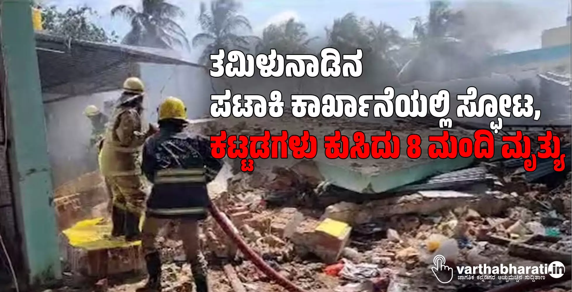 ತಮಿಳುನಾಡಿನ ಪಟಾಕಿ ಕಾರ್ಖಾನೆಯಲ್ಲಿ ಸ್ಫೋಟ, ಕಟ್ಟಡಗಳು ಕುಸಿದು 8 ಮಂದಿ ಮೃತ್ಯು