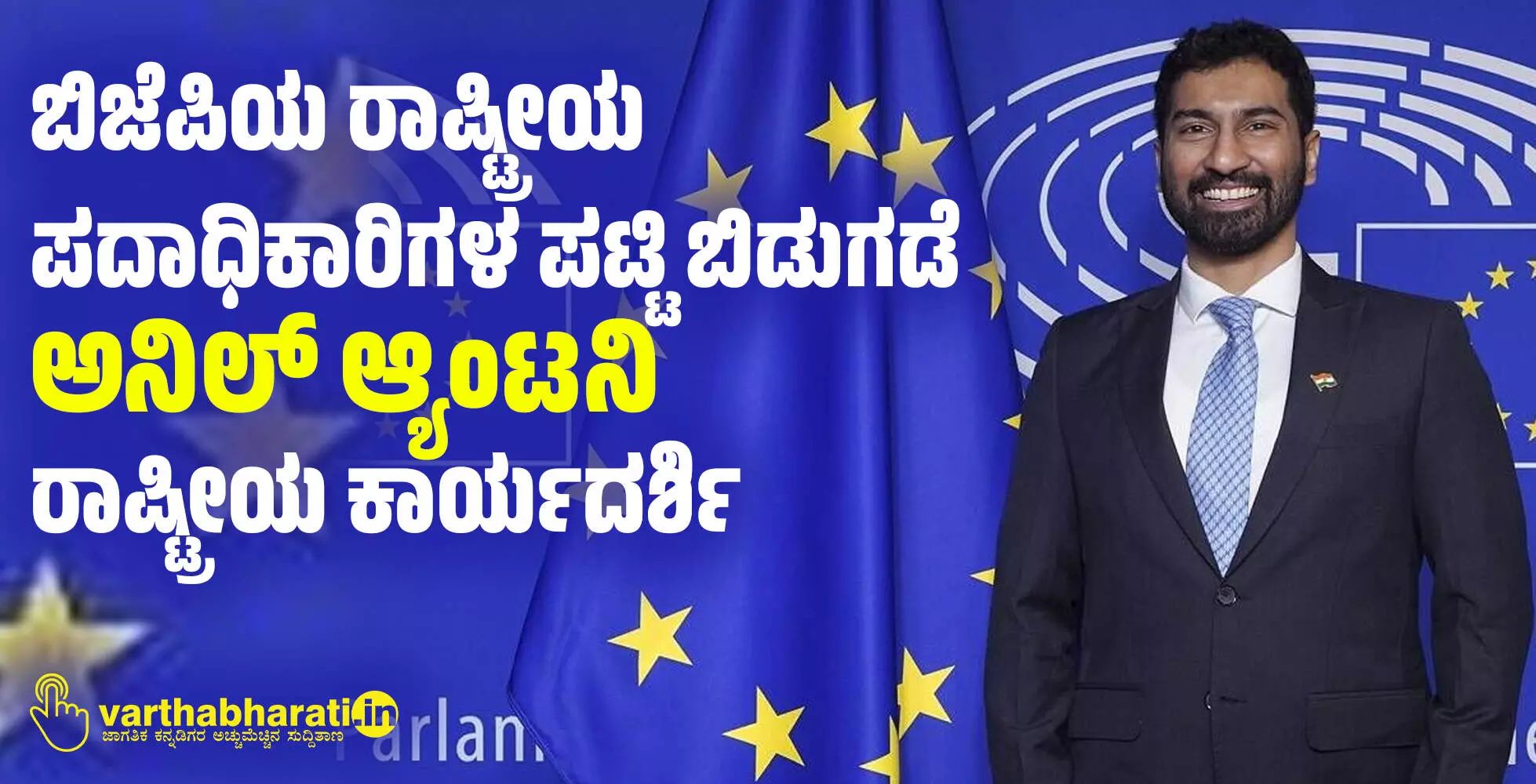 ಬಿಜೆಪಿಯ ರಾಷ್ಟ್ರೀಯ ಪದಾಧಿಕಾರಿಗಳ ಪಟ್ಟಿ ಬಿಡುಗಡೆ: ಅನಿಲ್ ಆ್ಯಂಟನಿ ರಾಷ್ಟ್ರೀಯ ಕಾರ್ಯದರ್ಶಿ