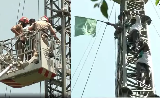 #WATCH | Delhi: Tamil Nadu farmers were brought down from the mobile tower after a few of them climbed up while protesting for their various demands. pic.twitter.com/sPoumKx0DB