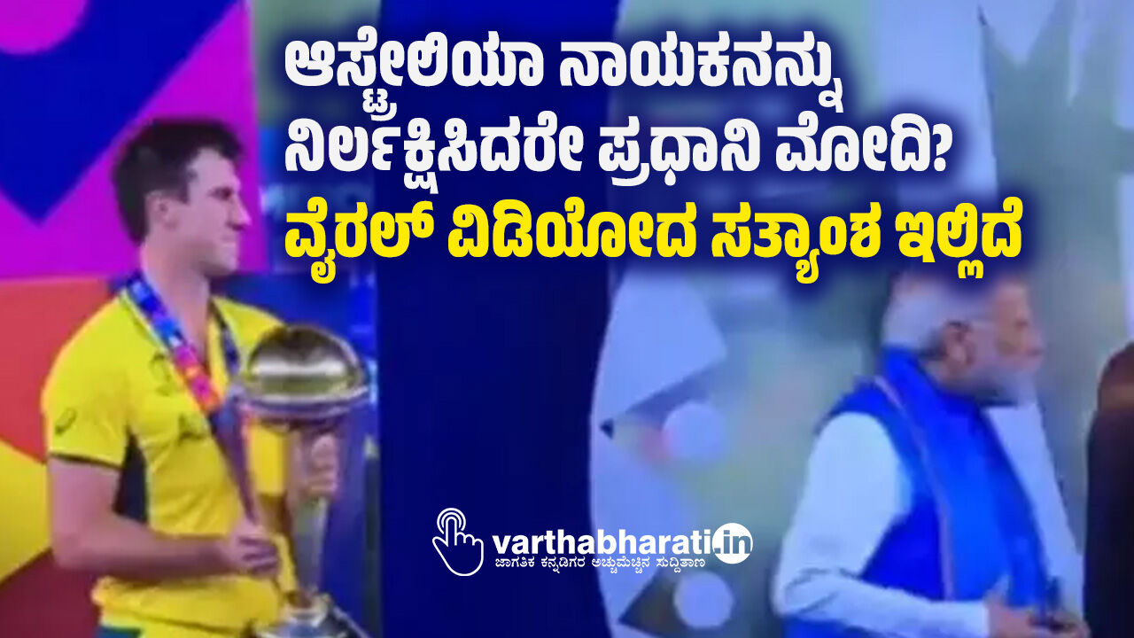ಹೊಸದಿಲ್ಲಿ: ನಿನ್ನೆ (ರವಿವಾರ) ನಡೆದ ಕ್ರಿಕೆಟ್ ವಿಶ್ವಕಪ್ ಫೈನಲ್ ನಲ್ಲಿ ಗೆದ್ದ ಆಸ್ಟ್ರೇಲಿಯಾ ತಂಡದ ನಾಯಕನನ್ನು ಭಾರತದ ಪ್ರಧಾನಿ ನರೇಂದ್ರ ಮೋದಿ ಅವರು ನಿರ್ಲಕ್ಷಿಸಿದ್ದಾರೆ ಎಂದು ಪ್ರತಿಪಾದಿಸುವ ವಿಡಿಯೋವನ್ನು ಹಲವಾರು ಸಾಮಾಜಿಕ ಜಾಲತಾಣ ಬಳಕೆದಾರರು ಹಂಚಿಕೊಂಡಿದ್ದು, ಪ್ರಧಾನಿ ಮೋದಿ ನಡೆಗೆ ಟೀಕೆ ಮಾಡಿದ್ದಾರೆ.