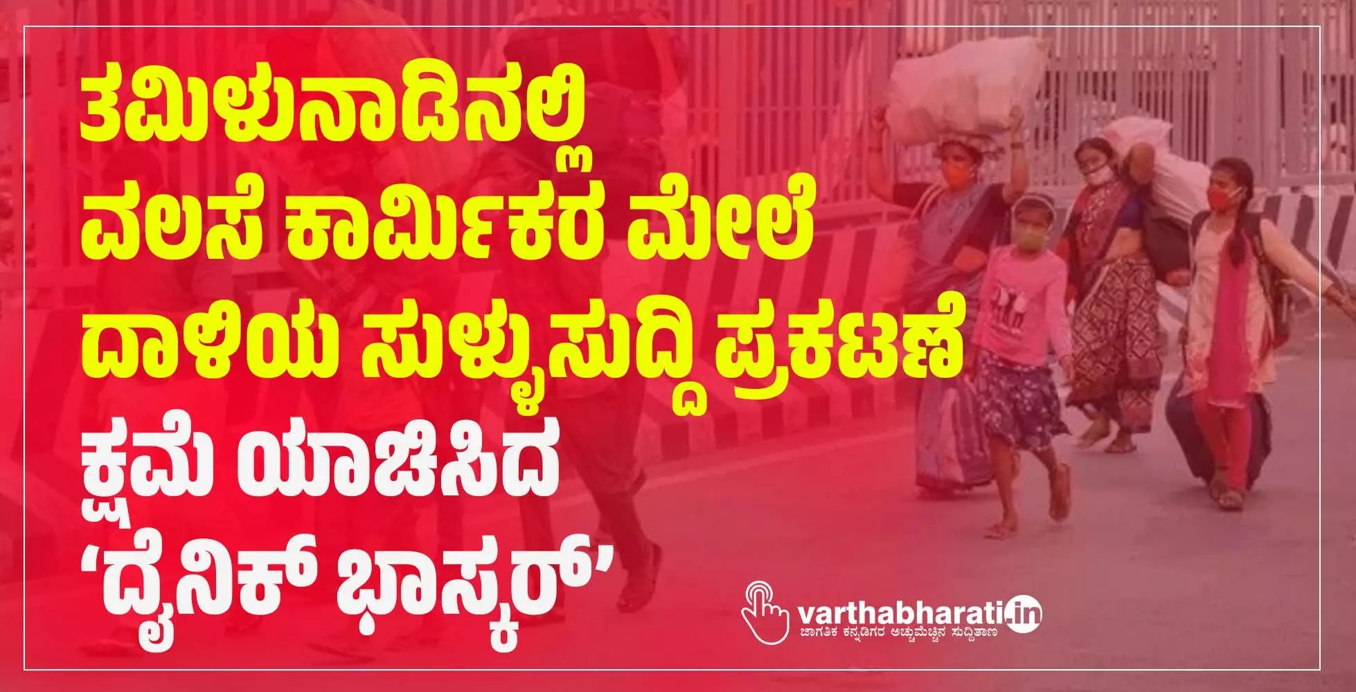 ತಮಿಳುನಾಡಿನಲ್ಲಿ ವಲಸೆ ಕಾರ್ಮಿಕರ ಮೇಲೆ ದಾಳಿಯ ಸುಳ್ಳುಸುದ್ದಿ ಪ್ರಕಟಣೆ: ಕ್ಷಮೆ ಯಾಚಿಸಿದ ‘ದೈನಿಕ್ ಭಾಸ್ಕರ್’