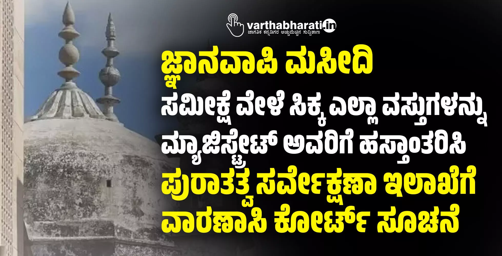 ಜ್ಞಾನವಾಪಿ ಮಸೀದಿ ಸಮೀಕ್ಷೆ ವೇಳೆ ಸಿಕ್ಕ ಎಲ್ಲಾ ವಸ್ತುಗಳನ್ನು ಮ್ಯಾಜಿಸ್ಟ್ರೇಟ್ ಅವರಿಗೆ ಹಸ್ತಾಂತರಿಸಿ: ಪುರಾತತ್ವ ಸರ್ವೇಕ್ಷಣಾ ಇಲಾಖೆಗೆ ವಾರಣಾಸಿ ಕೋರ್ಟ್ ಸೂಚನೆ