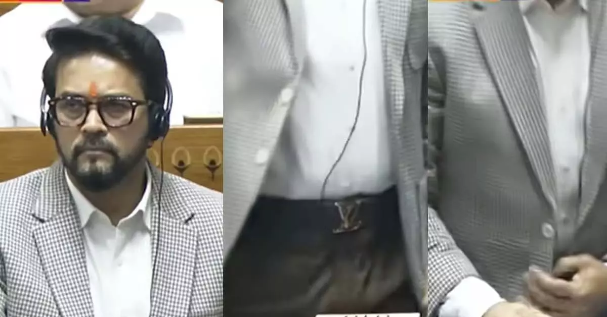 Anurag Thakur who tells children of poor Hindus to leave education and come on the streets to save religion was seen wearing a INR 80,000 imported Louis Vuitton Belt in Lok Sabha.