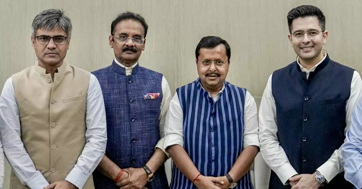 AAP ಸಂಸದರ ಪಕ್ಷಾಂತರದ ನಂತರ ರಾಜ್ಯಸಭೆಯಲ್ಲಿ ಎನ್ಡಿಎ ಬಲವರ್ಧನೆ; 3ನೇ ಎರಡರಷ್ಟು ಬಹುಮತಕ್ಕೆ ಕೇವಲ 17 ಸ್ಥಾನಗಳ ಕೊರತೆ