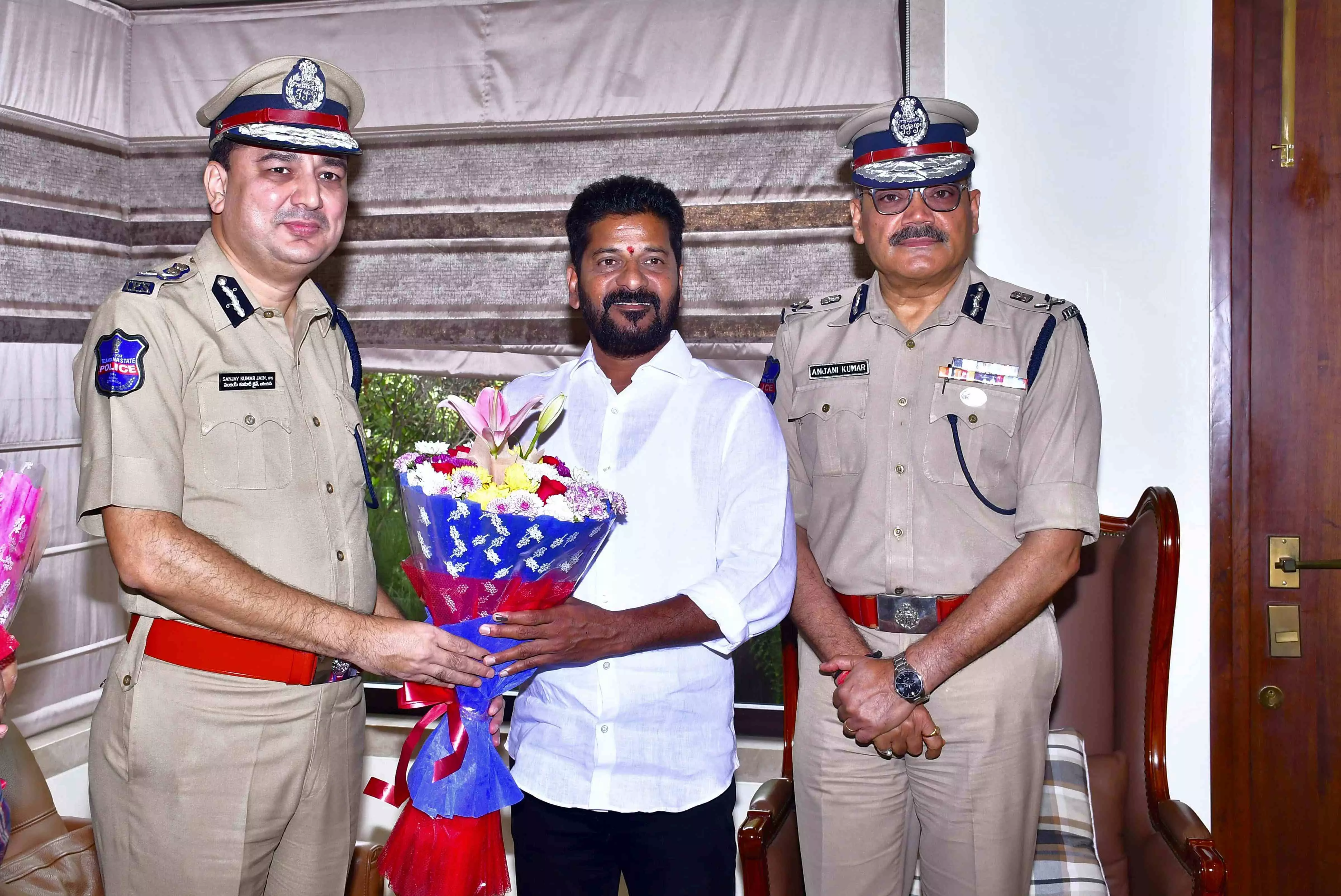 ತೆಲಂಗಾಣದ ರಾಜ್ಯ ಪೊಲೀಸ್ ನೋಡಲ್ ಅಧಿಕಾರಿ ಸಂಜಯ್ ಜೈನ್, ಮಹೇಶ್ ಭಾಗವತ್ ಅವರೊಂದಿಗೆ ತೆಲಂಗಾಣ ಪೊಲೀಸ್ ಮಹಾನಿರ್ದೇಶಕರು ತೆಲಂಗಾಣ ವಿಧಾನಸಭೆಗೆ ನಡೆಯುತ್ತಿರುವ ಸಾರ್ವತ್ರಿಕ ಚುನಾವಣೆಯಲ್ಲಿ ಸ್ಪರ್ಧಿಸುತ್ತಿರುವ ಅಭ್ಯರ್ಥಿ ಹಾಗೂ ಸಂಭವನೀಯ ಸಿಎಂ ಅಭ್ಯರ್ಥಿ ಅನುಮುಲಾ ರೇವಂತ್ ರೆಡ್ಡಿ ಅವರನ್ನು ಹೈದರಾಬಾದ್ನಲ್ಲಿ ಹೂವಿನೊಂದಿಗೆ ಭೇಟಿಯಾಗಿರುವುದಕ್ಕೆ ಈ ಕ್ರಮ ಕೈಗೊಳ್ಳಗಾಗಿದೆ ಎಂದು ತಿಳಿದು ಬಂದಿದೆ.