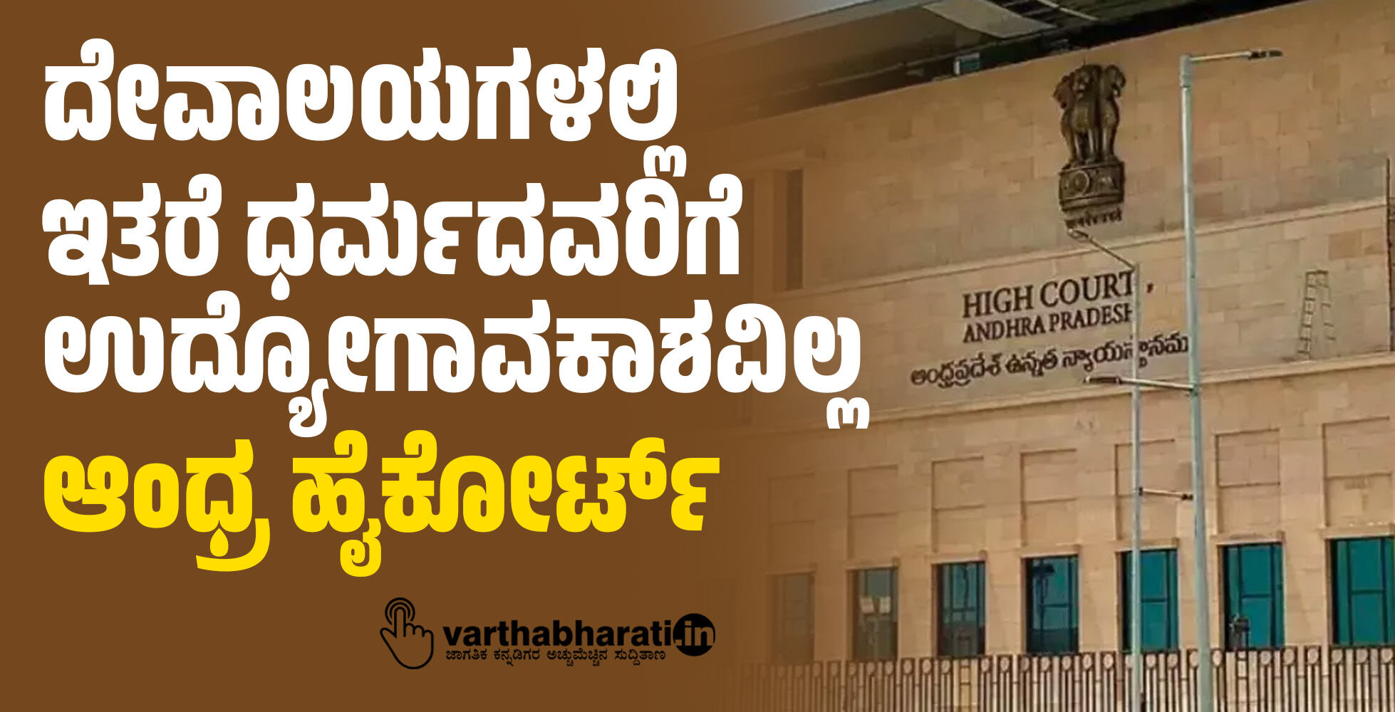 ವಿಜಯವಾಡ: ದೇವಾಲಯಗಳಲ್ಲಿ ಇತರೆ ಧರ್ಮದ ಜನರಿಗೆ ಉದ್ಯೋಗಕಾಶವಿಲ್ಲ. ಹಿಂದೂ ಧರ್ಮವನ್ನು ಪಾಲಿಸುವವರು ಮಾತ್ರ ದೇವಾಲಯಗಳಲ್ಲಿ ಉದ್ಯೋಗ ನಿರ್ವಹಿಸಲು ಅರ್ಹರಾಗಿದ್ದಾರೆ ಎಂದು ಆಂಧ್ರಪ್ರದೇಶ ಹೈಕೋರ್ಟ್ ತೀರ್ಪು ನೀಡಿದೆ ಎಂದು newindianexpress.com ವರದಿ ಮಾಡಿದೆ.