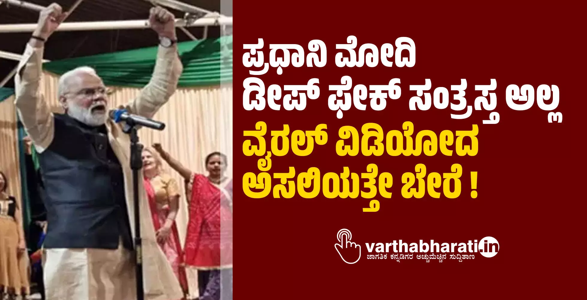 ಮಹಿಳೆಯರ ಗುಂಪಿನೊಂದಿಗೆ ಪ್ರಧಾನಿ ನರೇಂದ್ರ ಮೋದಿ ಅವರನ್ನೇ ಹೋಲುವ ವ್ಯಕ್ತಿಯೊಬ್ಬರು ಗಾರ್ಬಾ ನೃತ್ಯ ಮಾಡುತ್ತಿರುವ ವಿಡಿಯೋ ವೈರಲ್ ಆದ ಬಳಿಕ, ಹಲವರು ಪ್ರಧಾನಿ ನರೇಂದ್ರ ಮೋದಿ ಅವರ ಡೀಪ್ ಫೇಕ್ ವಿಡಿಯೋ ರಚಿಸಲಾಗಿದೆ ಎಂದು ಭಾವಿಸಿದ್ದರು. ಮಾಧ್ಯಮಗಳು ಕೂಡಾ ಈ ಬಗ್ಗೆ ವರದಿಯನ್ನು ಬಿತ್ತರಿಸಿದ್ದವು.
