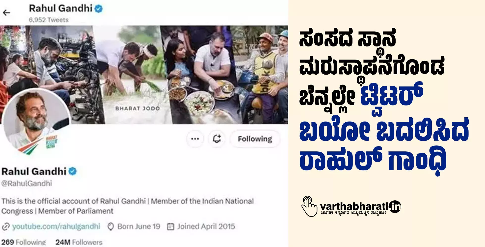 ಸಂಸದ ಸ್ಥಾನ ಮರುಸ್ಥಾಪನೆಗೊಂಡ ಬೆನ್ನಲ್ಲೇ ಟ್ವಿಟರ್ ಬಯೋ ಬದಲಿಸಿದ ರಾಹುಲ್ ಗಾಂಧಿ