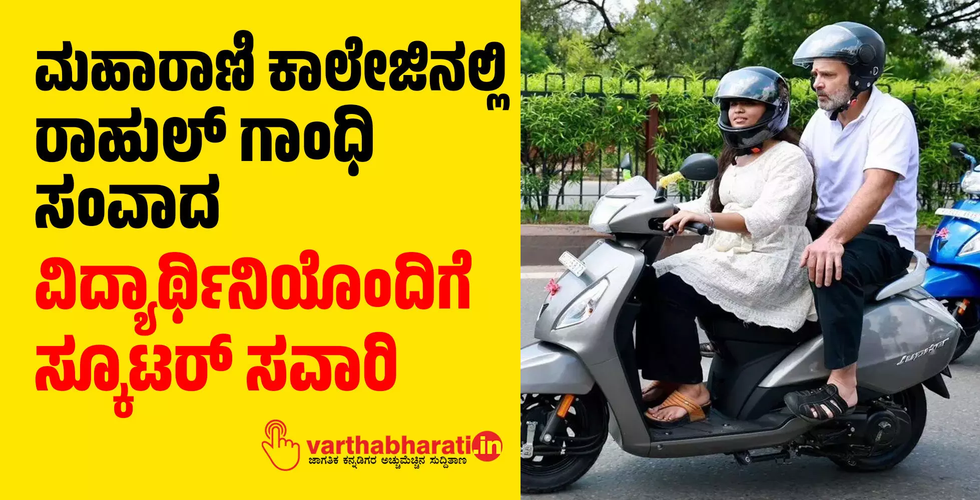 ಮಹಾರಾಣಿ ಕಾಲೇಜಿನಲ್ಲಿ ರಾಹುಲ್ ಗಾಂಧಿ ಸಂವಾದ: ವಿದ್ಯಾರ್ಥಿನಿಯೊಂದಿಗೆ ಸ್ಕೂಟರ್ ಸವಾರಿ