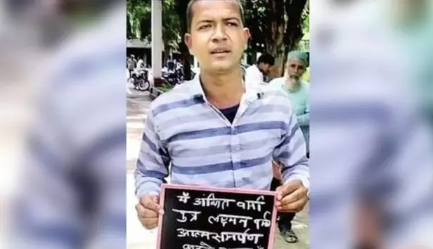‘‘ನಾನು ಶರಣಾಗಲು ಬಂದಿದ್ದೇನೆ, ಗುಂಡು ಹಾರಿಸಬೇಡಿ’’ ಎಂಬ ಫಲಕದೊಂದಿಗೆ ಶರಣಾದ ಆರೋಪಿ