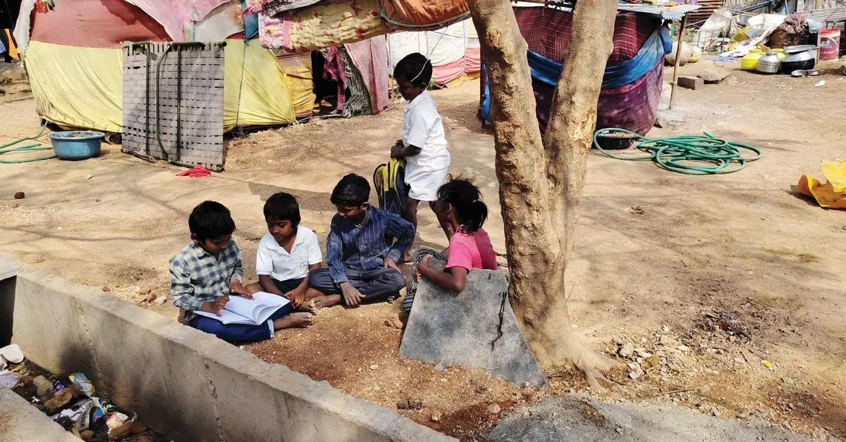 ಮೂಲಸೌಕರ್ಯಗಳಿಂದ ವಂಚಿತಗೊಂಡ ಸುಡುಗಾಡು ಸಿದ್ಧ ಸಮುದಾಯ: ಗುಡಿಸಲುಗಳ ಮುಂದೆಯೇ ಮಕ್ಕಳ ವಿದ್ಯಾಭ್ಯಾಸ