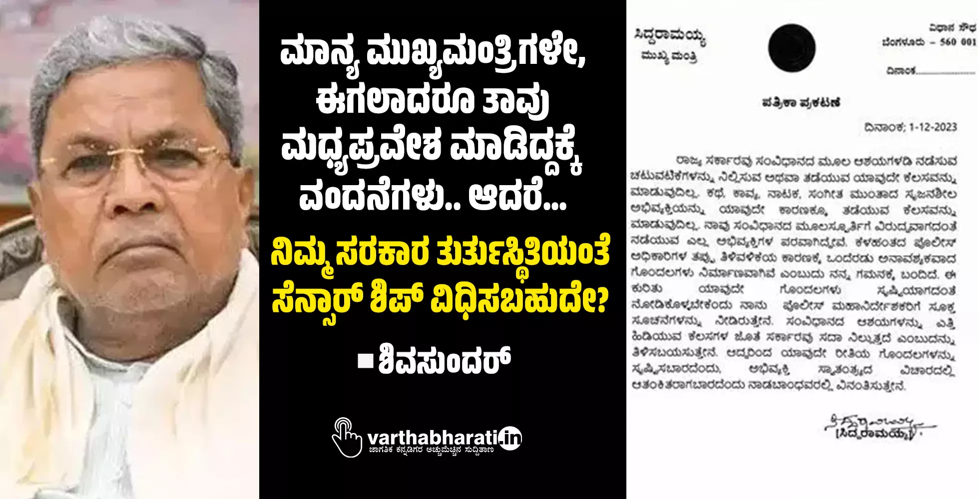 ► ಆದರೆ ಕಾಂಗ್ರೆಸ್ ಸರ್ಕಾರ ಇಂಥಾ ಸಮಾಜ ವಿರೋಧಿ ಶಕ್ತಿಗಳನ್ನು ಹತ್ತಿಕ್ಕಿ ನ್ಯಾಯದ ಪರವಾದ ಅಭಿವ್ಯಕ್ತಿಗೆ ಅವಕಾಶ ಕೊಡಬೇಕೇ ವಿನಾ ಬಿಜೆಪಿಗಿಂತ ಒಂದು ಹೆಜ್ಜೆ ಮುಂದೆ ಹೋಗಿ ನಾಟಕದ, ಹಾಡುಗಳ, ಭಾಷಣಗಳ, ಘೋಷಣೆಗಳ ಸ್ಕ್ರಿಪ್ಟ್ ಕೇಳುತ್ತಾ ತುರ್ತುಸ್ಥಿತಿಯಂತ ಸೆನ್ಸಾರ್ ಶಿಪ್ ವಿಧಿಸಬಹುದೇ?
