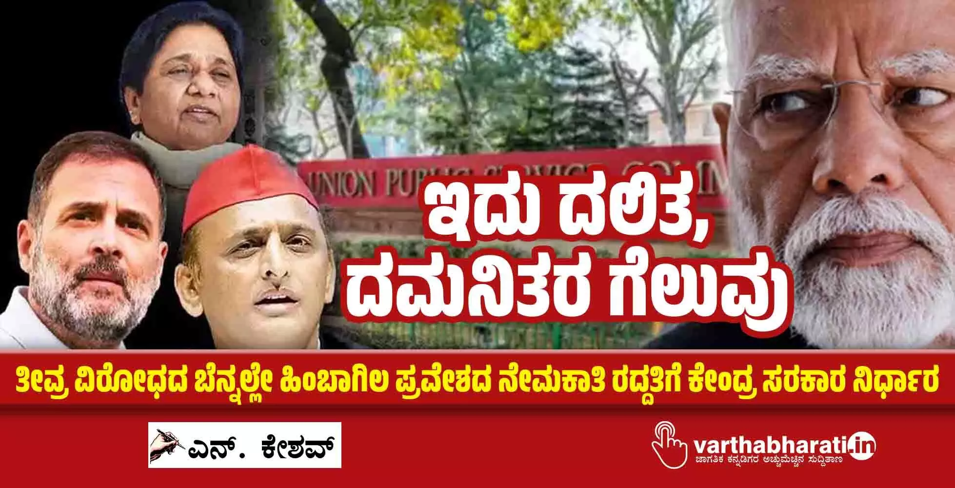 ತೀವ್ರ ವಿರೋಧದ ಬೆನ್ನಲ್ಲೇ ಹಿಂಬಾಗಿಲ ಪ್ರವೇಶದ ನೇಮಕಾತಿ ರದ್ದತಿಗೆ ಕೇಂದ್ರ ಸರಕಾರ ನಿರ್ಧಾರ
