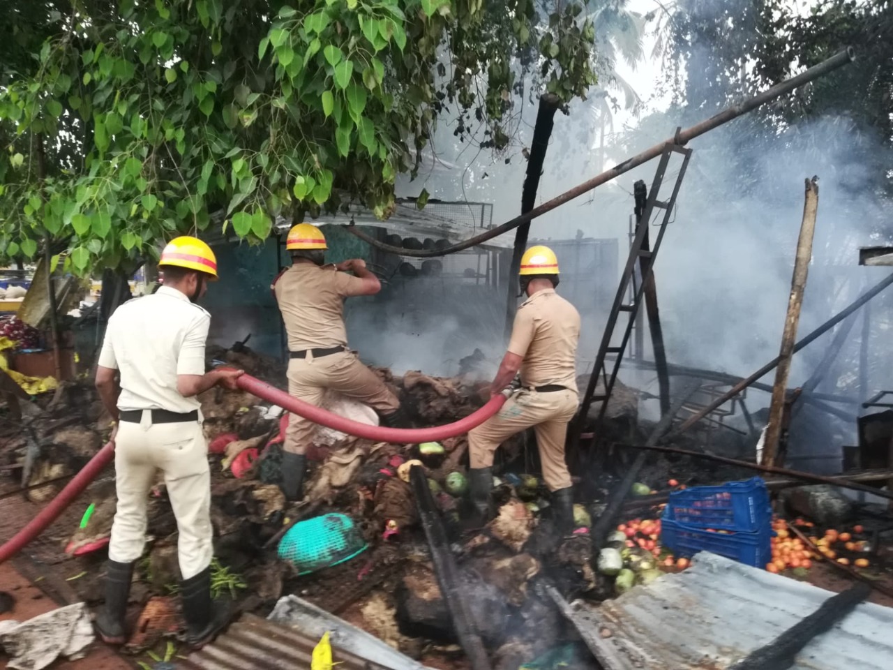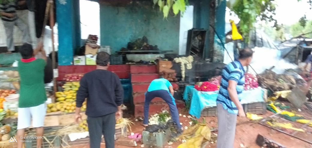 ಗಣಪತಿ ಸೋಮಯ್ಯ ನಾಯ್ಕ ಎಂಬವರ ಹೂವಿನ ಅಂಗಡಿ, ಗೋವಿಂದ ಶೆಟ್ಟಿಯವರ ತರಕಾರಿ ಅಂಗಡಿ ಹಾಗೂ ಮಹೇಶ ನಾಗಪ್ಪ ನಾಯ್ಕ ಅವರ ಹಣ್ಣಿನ ಅಂಗಡಿ ಸಂಪೂರ್ಣ ಸುಟ್ಟು ಹೋಗಿದ್ದು, ಇನ್ನೊಂದು ಅಂಗಡಿಗೂ ಬೆಂಕಿ ತಗಲಿದ್ದು, ವ್ಯಾಪಾರಿಗಳು ತೀವ್ರ ನಷ್ಟ ಅನುಭವಿಸುವಂತಾಗಿದೆ.