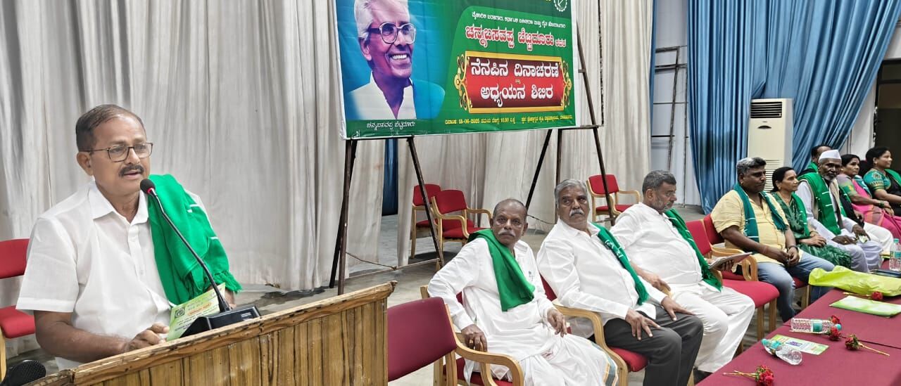 ನಗರದ ಕೃಷಿ ವಿಜ್ಞಾನಗಳ ವಿಶ್ವವಿದ್ಯಾಲಯದ ಪ್ರೇಕ್ಷಾಗೃಹದಲ್ಲಿ ರಾಜ್ಯ ರೈತ ಸಂಘದ ಜಿಲ್ಲಾ ಘಟಕದಿಂದ ಆಯೋಜಿಸಿದ್ದ ರೈತ ಹೋರಾಟಗಾರ ಚನ್ನಬಸವಪ್ಪ ಬೆಟ್ಟದೂರು ಅವರ ನೆನಪಿನ ದಿನ ಆಚರಣೆ ಹಾಗೂ ಅಧ್ಯಯನ ಶಿಬಿರವನ್ನು ಉದ್ಘಾಟಿಸಿ ಅವರು ಮಾತನಾಡಿದರು.