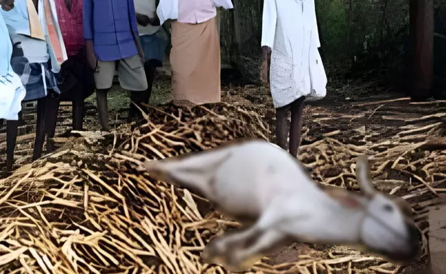 ಗ್ರಾಮದ ರೈತ ಲಚಮಪ್ಪ ಅವರ ಆಕಳು ಜಮೀನಿನಲ್ಲಿ ಮೇಯುತ್ತಿದ್ದ ವೇಳೆ ಸಿಡಿಲು ಬಡಿದಿದೆ ಎನ್ನಲಾಗಿದೆ.
