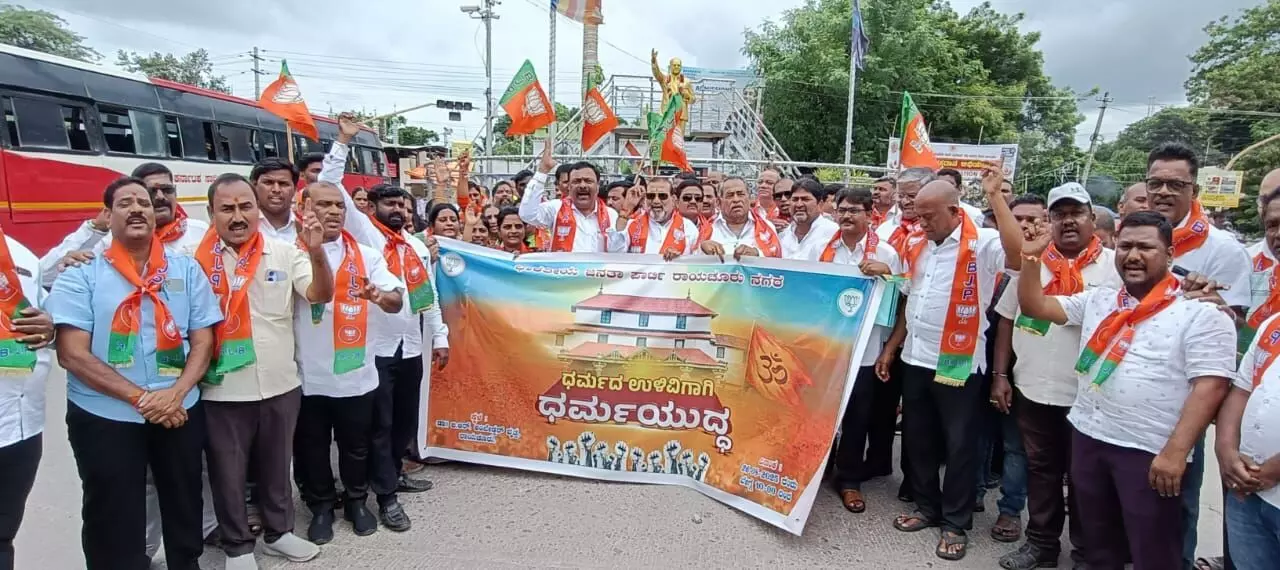 ಧರ್ಮಸ್ಥಳದ ಬಗ್ಗೆ ಅಪಪ್ರಚಾರ ಖಂಡಿಸಿ ರಾಯಚೂರಿನಲ್ಲಿ ಪ್ರತಿಭಟನೆ