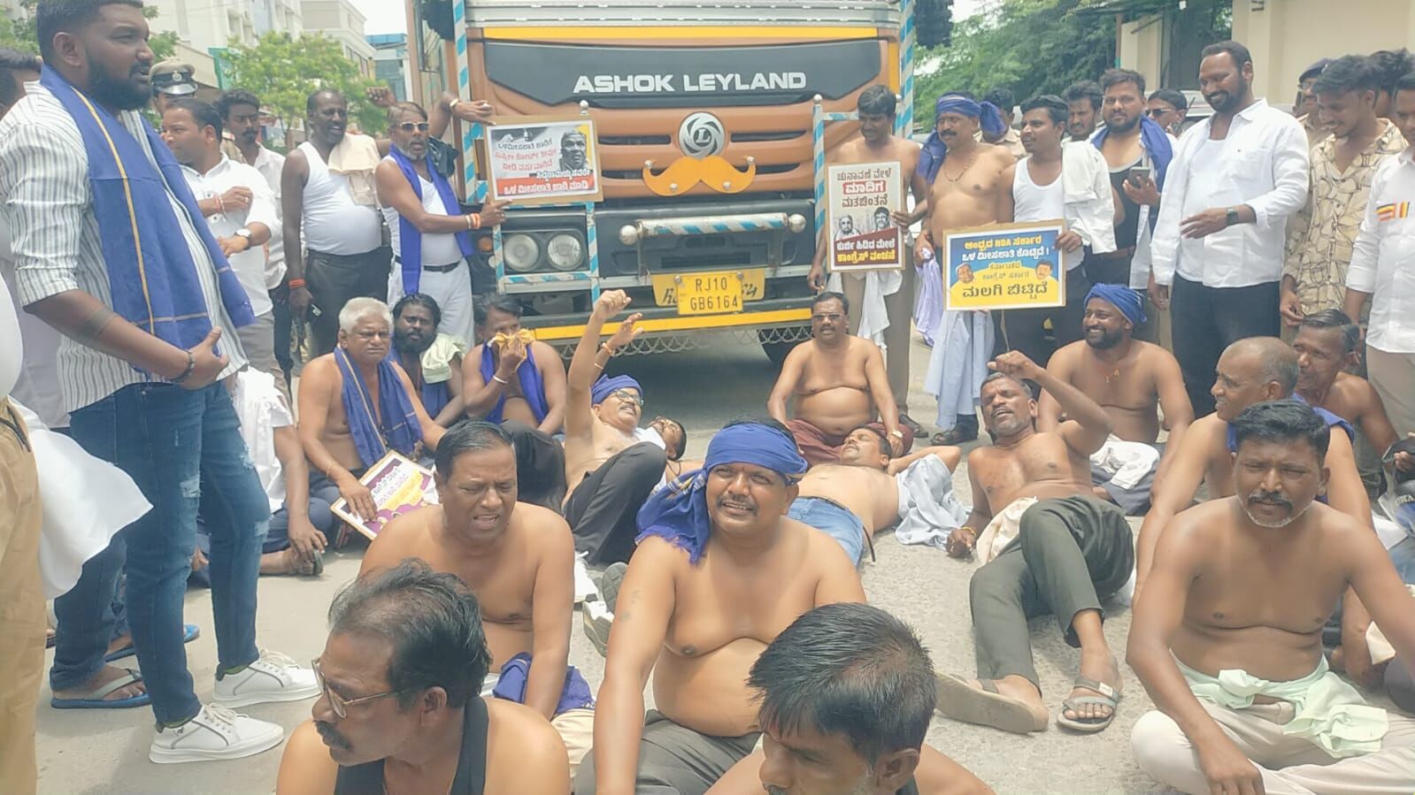 ಅಂಬೇಡ್ಕರ್ ವೃತ್ತದಲ್ಲಿ ಮಾನವ ಸರಪಳಿ ನಿರ್ಮಿಸಿ ಒಂದು ತಾಸಿಗೂ ಹೆಚ್ಚು ಕಾಲ ರಸ್ತೆ ತಡೆ ನಡೆಸಿದರು. ನಂತರ ಅರೆಬೆತ್ತಲೆಯಾಗಿ ರಾಜ್ಯ ಸರ್ಕಾರದ ವಿರುದ್ಧ ಘೋಷಣೆ ಕೂಗಿದರು. ರಾಜ್ಯ ಸರ್ಕಾರ ಕೊಟ್ಟ ಮಾತಿನಂತೆ ನಡೆದುಕೊಳ್ಳುತ್ತಿಲ್ಲ. ಸುಪ್ರಿಂಕೋರ್ಟ್ ಒಳ ಮೀಸಲಾತಿ ಜಾರಿಗೆ ನಿರ್ದೇಶನ ನೀಡಿದ್ದರೂ ರಾಜ್ಯ ಸರ್ಕಾರ ಕಾಲಹರಣ ಮಾಡುತ್ತಿದೆ ಎಂದು ಪ್ರತಿಭಟನಾಕಾರರು ಆಕ್ರೋಶ ವ್ಯಕ್ತಪಡಿಸಿದರು.