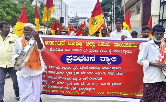 ರಾಯಚೂರು | ಕೈಗಾರಿಕಾ ಪ್ರದೇಶಕ್ಕಾಗಿ ರೈತರ ಜಮೀನು ಭೂಸ್ವಾಧೀನ ಆರೋಪ; ಜನಶಕ್ತಿ ಸಂಘಟನೆಯಿಂದ ಪ್ರತಿಭಟನೆ