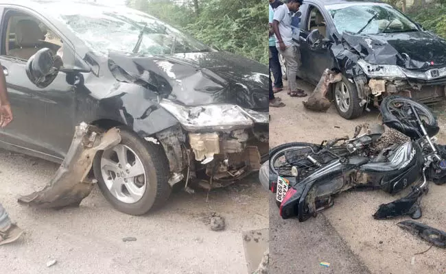 ಘಟನೆಯಲ್ಲಿ ಕಾರಿನ ಮುಂಭಾಗ ಜಖಂಗೊಂಡಿದ್ದು, ಬೈಕ್ ಸಂಪೂರ್ಣ ನಜ್ಜುಗುಜ್ಜಾಗಿದೆ.