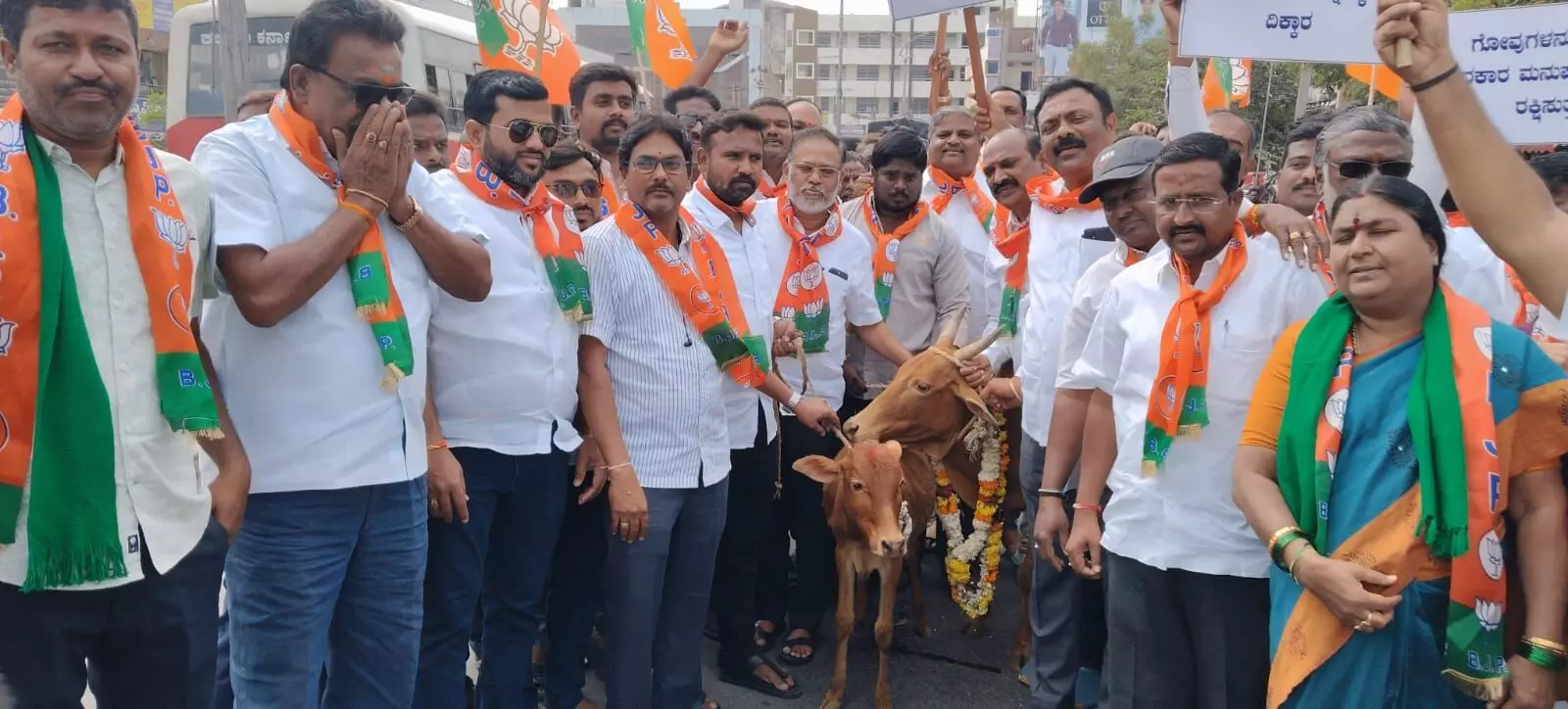 ನಗರದ ಬಸವೇಶ್ವರ ವೃತ್ತದಲ್ಲಿ ಬಸವೇಶ್ವರ ಪುತ್ಥಳಿಗೆ ಮಾಲಾರ್ಪಣೆ ಮಾಡಿ, ಗೋವುಗಳನ್ನು ಹಿಡಿದು ನಗರದ ನ್ಯಾಯಾಲಯ, ಟಿಪ್ಪು ಸರ್ಕಲ್ ಮೂಲಕ ಗೋಶಾಲೆವರೆಗೆ ಮೆರವಣಿಗೆ ನಡೆಸಿ ಸರಕಾರದ ವಿರುದ್ಧ ಘೋಷಣೆ ಕೂಗಿ ಆಕ್ರೋಶ ವ್ಯಕ್ತಪಡಿಸಿದರು.