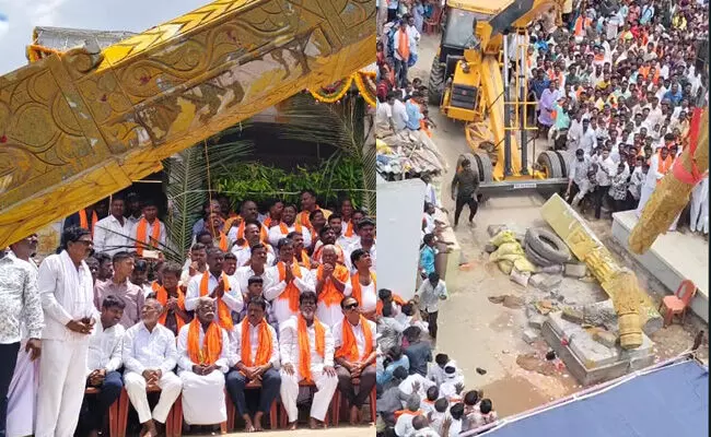 ರಾಯಚೂರು | ಆಂಜನೇಯ ದೇವಸ್ಥಾನ ಉದ್ಘಾಟನೆ ವೇಳೆ ಮುರಿದ ಬಿದ್ದ ಗರುಡಸ್ತಂಭ : ತಪ್ಪಿದ ಭಾರಿ ಅನಾಹುತ