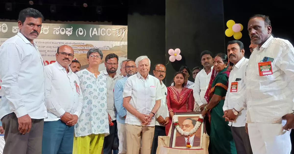 ಎಐಸಿಸಿಟಿಯು ರಾಜ್ಯ ಪ್ರಧಾನ ಕಾರ್ಯದರ್ಶಿ ಮೈತ್ರೇಯಿ ಕೃಷ್ಣನ್ ಮಾತನಾಡಿ, ಗುತ್ತಿಗೆ ಕಾರ್ಮಿಕರಿಗೆ ಘನತೆಯ ಬದುಕು, ಆರ್ಥಿಕ ಮತ್ತು ಸಾಮಾಜಿಕ ಸಮಾನತೆ ಸಿಗಬೇಕು. ನಾಲ್ಕು ಕಾರ್ಮಿಕ ಸಂಹಿತೆಗಳನ್ನು ರದ್ದುಪಡಿಸಿ ಕಾರ್ಮಿಕರ ಶ್ರಮಕ್ಕೆ ತಕ್ಕ ಬೆಲೆ ನೀಡಬೇಕು ಎಂದು ಆಗ್ರಹಿಸಿದರು.