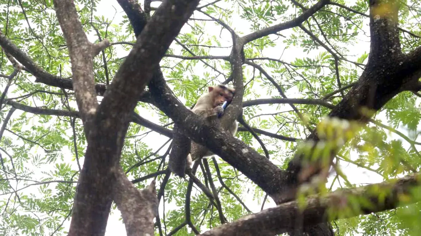 ಶಿವಮೊಗ್ಗ: ಯುವತಿಯ ಮೊಬೈಲ್ ಫೋನ್ ಎಗರಿಸಿ ಮರವೇರಿದ ಮಂಗ!