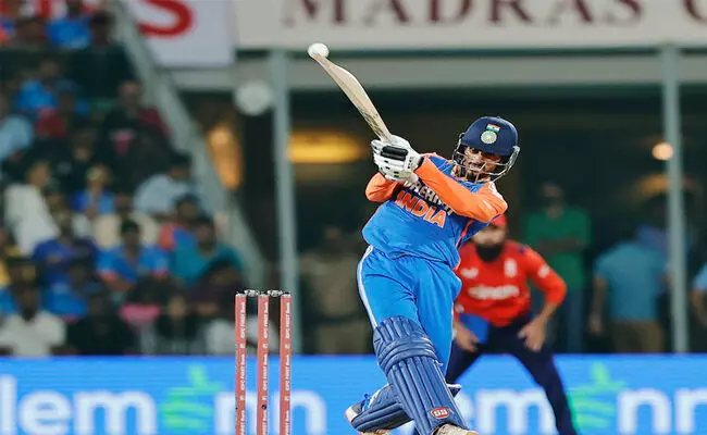 ಭಾರತ 19 ರನ್ ಗೆ 2 ವಿಕೆಟ್ ಕಳೆದುಕೊಂಡಿತು. ಆಗ ನಾಯಕ ಸೂರ್ಯಕುಮಾರ್ ರೊಂದಿಗೆ 3ನೇ ವಿಕೆಟ್ ಗೆ 39 ರನ್ ಸೇರಿಸಿದ ತಿಲಕ್ ವರ್ಮಾ ತಂಡವನ್ನು ಆಧರಿಸಿದರು.