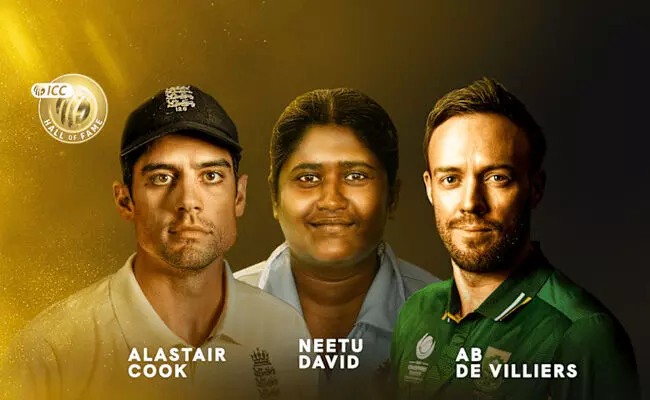 ಹೊಸದಿಲ್ಲಿ : ದಕ್ಷಿಣ ಆಫ್ರಿಕಾದ ದಂತಕತೆ ಎಬಿ ಡಿ ವಿಲಿಯರ್ಸ್, ಇಂಗ್ಲೆಂಡ್ನ ಮಾಜಿ ನಾಯಕ ಅಲೆಸ್ಟರ್ ಕುಕ್ ಹಾಗೂ ಭಾರತದ ಲೆಜೆಂಡ್ ನೀತು ಡೇವಿಡ್ ಅವರನ್ನು ಐಸಿಸಿ ಹಾಫ್ ಆಫ್ ಫೇಮ್ಗೆ ಅಂತರ್ರಾಷ್ಟ್ರೀಯ ಕ್ರಿಕೆಟ್ ಕೌನ್ಸಿಲ್(ಐಸಿಸಿ)ಬುಧವಾರ ಸೇರ್ಪಡೆಗೊಳಿಸಿದೆ.