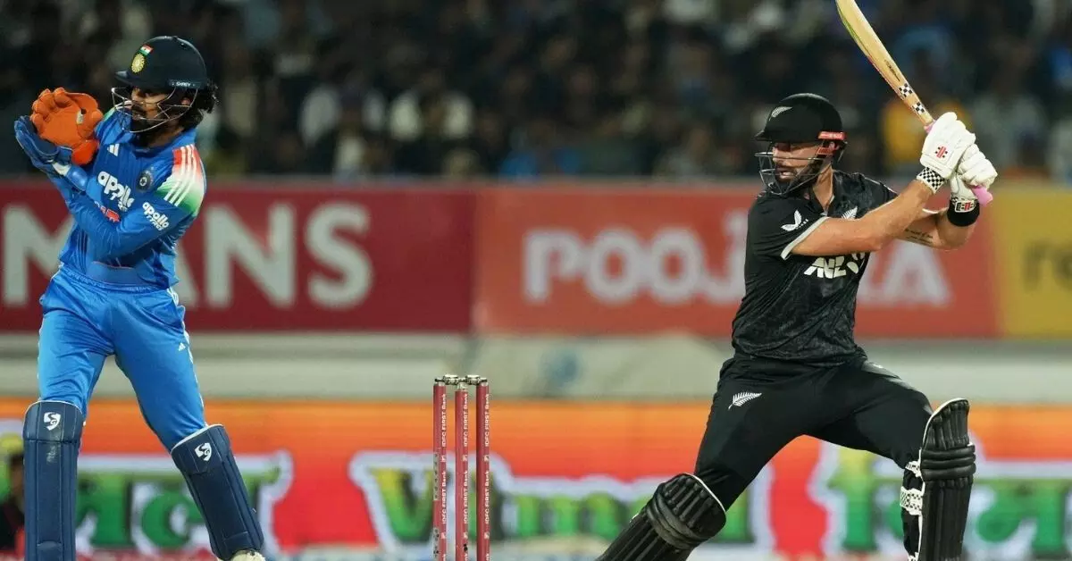 ರಾಜ್ಕೋಟ್: ಇಲ್ಲಿನ ಸೌರಾಷ್ಟ್ರ ಕ್ರಿಕೆಟ್ ಅಸೋಸಿಯೇಷನ್ ಸ್ಟೇಡಿಯಂನಲ್ಲಿ ಬುಧವಾರ ನಡೆದ ಭಾರತ – ನ್ಯೂಝಿಲ್ಯಾಂಡ್ ನಡುವಿನ ಏಕದಿನ ಸರಣಿಯ ಎರಡನೇ ಪಂದ್ಯದಲ್ಲಿ, ನ್ಯೂಝಿಲ್ಯಾಂಡ್ ತಂಡವು 7 ವಿಕೆಟ್ ಗಳ ಜಯ ಸಾಧಿಸಿದೆ. ಆ ಮೂಲಕ ಮೂರು ಪಂದ್ಯಗಳ ಸರಣಿಯಲ್ಲಿ 1-1ರ ಸಮಬಲ ಸಾಧಿಸಿದೆ.