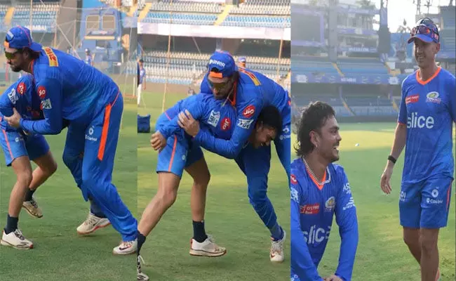 ಡೇವಿಡ್ ಹಾಗೂ ಇಶಾನ್ ಪರಸ್ಪರ ಕುಸ್ತಿ ಮಾಡುತ್ತಿರುವ ಗಮ್ಮತ್ತಿನ ವೀಡಿಯೊವನ್ನು ಮುಂಬೈ ಇಂಡಿಯನ್ಸ್ ತನ್ನ ಅಧಿಕೃತ ಎಕ್ಸ್ ಖಾತೆಯಲ್ಲಿ ಹಂಚಿಕೊಂಡಿದೆ. ತನ್ನ ಕಡಿಮೆ ಎತ್ತರದ ಲಾಭವನ್ನು ಪಡೆದುಕೊಂಡಿರುವ ಇಶಾನ್, ಡೇವಿಡ್ ಅವರ ಕಾಲುಗಳನ್ನು ಗಟ್ಟಿಯಾಗಿ ಹಿಡಿದುಕೊಂಡರು. ಆಗ ಇಬ್ಬರು ಕ್ರಿಕೆಟಿಗರು ಕೆಳಗೆ ಬಿದ್ದಿದ್ದು, ಅಂತಿಮವಾಗಿ ಇಶಾನ್ ತಾನೇ ಗೆದ್ದೆ ಎಂದು ಕೈಎತ್ತಿ ನಗುತ್ತಿರುವುದು ಎಂದು ವಿಡಿಯೊದಲ್ಲಿ ಕಂಡುಬಂದಿದೆ.