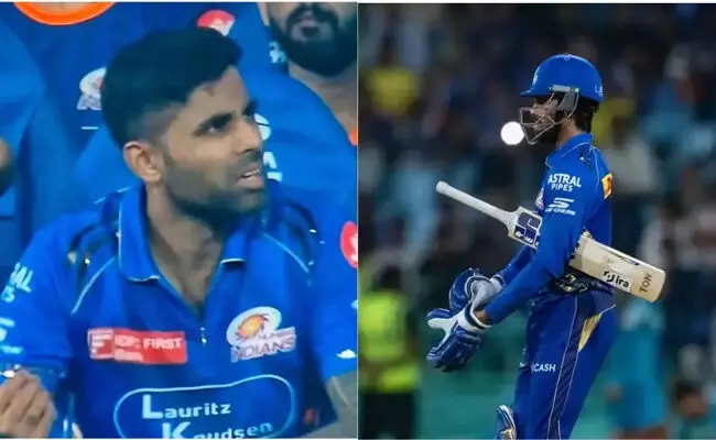 ಡಗೌಟ್ ನಲ್ಲಿ ಕುಳಿತಿದ್ದ ಮುಂಬೈ ತಂಡದ ಆಟಗಾರ ಸೂರ್ಯಕುಮಾರ್ ಯಾದವ್ ತಮ್ಮ ಅಸಮಾಧಾನ ಹೊರಹಾಕಿದರು. ಈ ಸಂದರ್ಭದಲ್ಲಿ ಮುಖ್ಯ ಕೋಚ್ ಮಹೇಲ ಜಯವರ್ಧನೆ ಅವರು ಸೂರ್ಯಕುಮಾರ್ಗೆ ಸ್ಪಷ್ಟನೆ ನೀಡುತ್ತಿರುವ ದೃಶ್ಯವು ಸಾಮಾಜಿಕ ಮಾಧ್ಯಮಗಳಲ್ಲಿ ವ್ಯಾಪಕವಾಗಿ ಹರಿದಾಡುತ್ತಿದೆ.