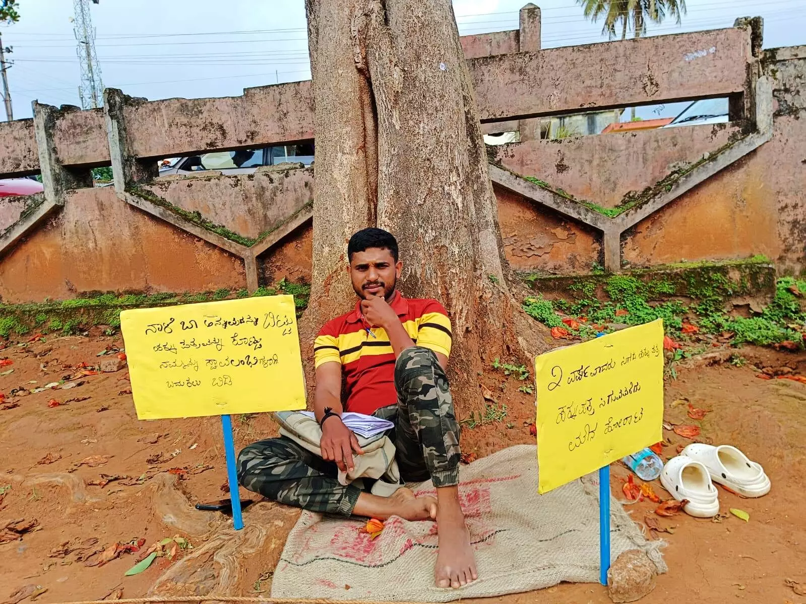 ನಿವೇಶನ ಹಕ್ಕುಪತ್ರ ನೀಡಲು ನಿರ್ಲಕ್ಷ್ಯ ಆರೋಪ: ಮೂಡಿಗೆರೆ ತಾಲೂಕು ಕಚೇರಿ ಎದುರು ಧರಣಿ ಕುಳಿತ ಗ್ರಾ.ಪಂ ಉಪಾಧ್ಯಕ್ಷ