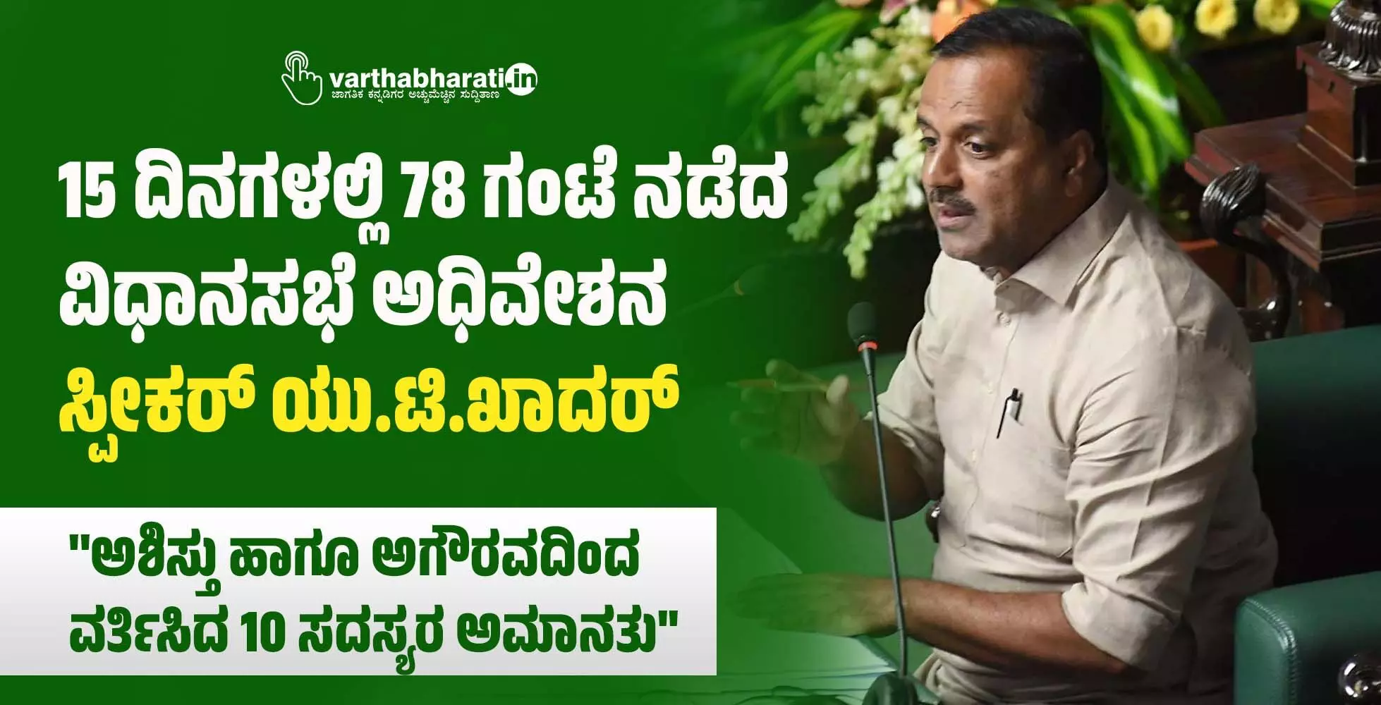 15 ದಿನಗಳಲ್ಲಿ 78 ಗಂಟೆ ನಡೆದ ವಿಧಾನಸಭೆ ಅಧಿವೇಶನ: ಸ್ಪೀಕರ್ ಯು.ಟಿ.ಖಾದರ್