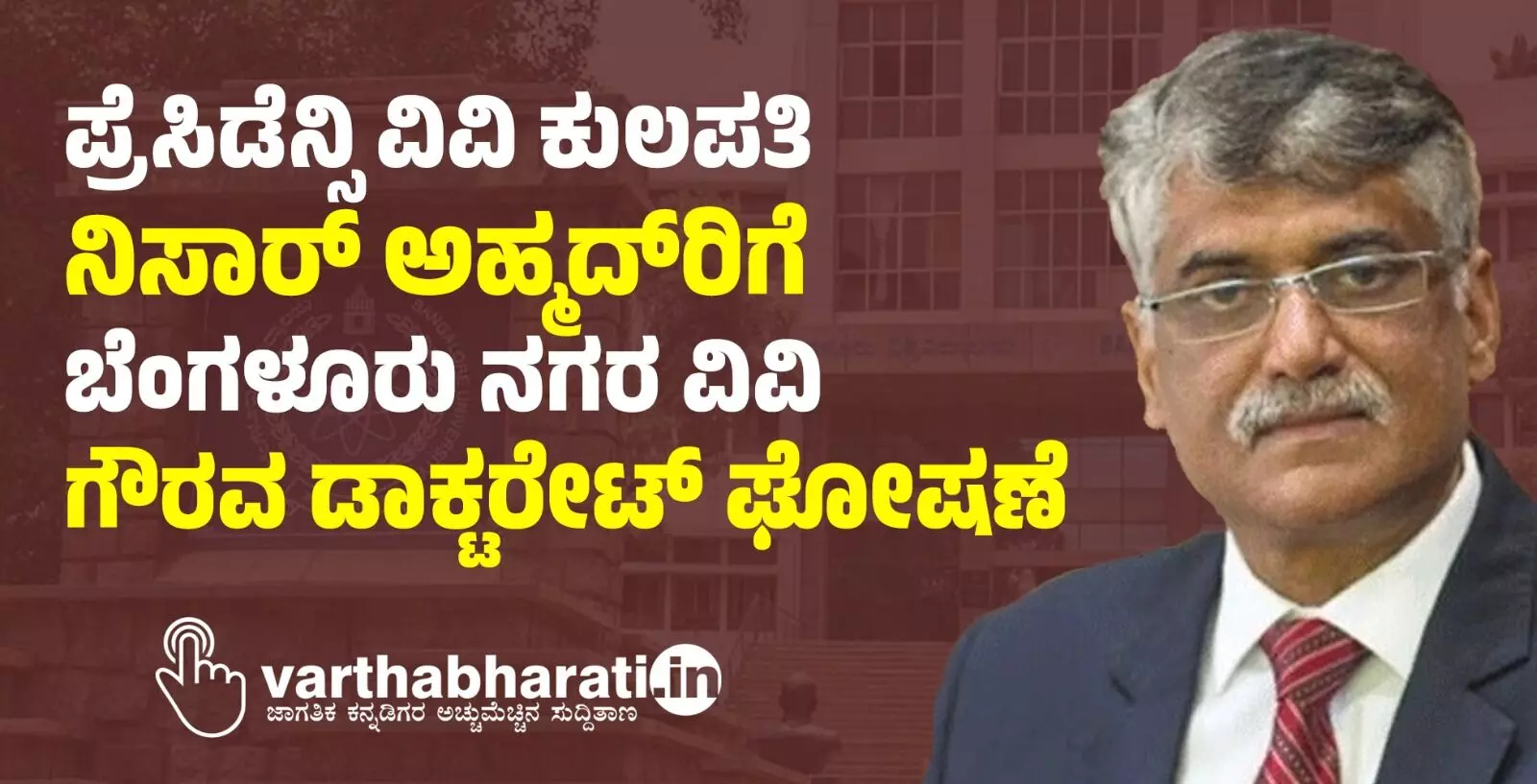ಪ್ರೆಸಿಡೆನ್ಸಿ ವಿವಿ ಕುಲಪತಿ ನಿಸಾರ್ ಅಹ್ಮದ್ರಿಗೆ ಬೆಂಗಳೂರು ನಗರ ವಿವಿ ಗೌರವ ಡಾಕ್ಟರೇಟ್ ಘೋಷಣೆ