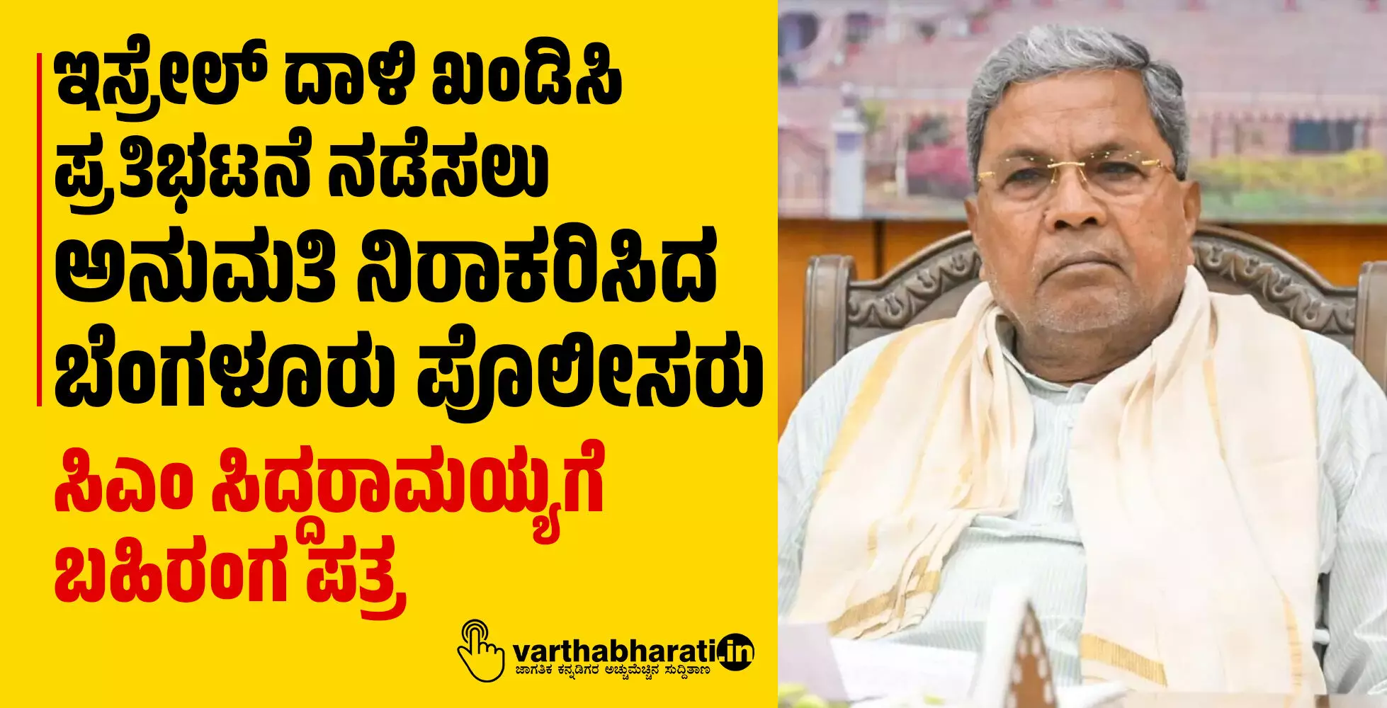 ಇಸ್ರೇಲ್ ದಾಳಿ ಖಂಡಿಸಿ ಪ್ರತಿಭಟನೆ ನಡೆಸಲು ಅನುಮತಿ ನಿರಾಕರಿಸಿದ ಬೆಂಗಳೂರು ಪೊಲೀಸರು; ಸಿಎಂ ಸಿದ್ದರಾಮಯ್ಯಗೆ ಬಹಿರಂಗ ಪತ್ರ