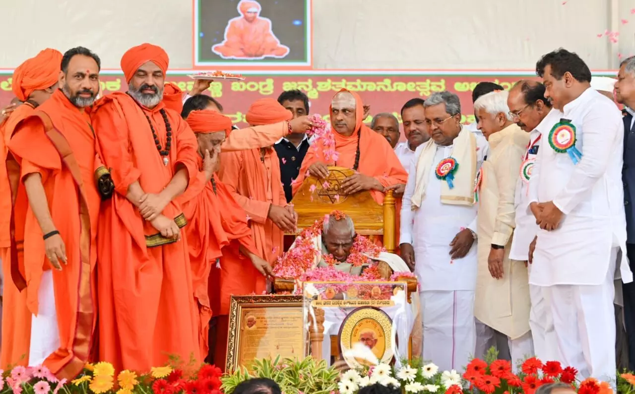 ಶತಮಾನೋತ್ಸವ ಸ್ವಾಗತ ಸಮಿತಿ ಅಧ್ಯಕ್ಷ ಡಾ.ಶಾಮನೂರು ಶಿವಶಂಕರಪ್ಪ ಅಧ್ಯಕ್ಷತೆ ವಹಿಸಿದ್ದ ಈ ಕಾರ್ಯಕ್ರಮದ ಸಾನ್ನಿಧ್ಯವನ್ನು ತರಳಬಾಳು ಸಿರಿಗೆರೆ ಶ್ರೀಶಿವಮೂರ್ತಿ ಸ್ವಾಮಿ ವಹಿಸಿದ್ದರು. ಸುತ್ತೂರು ಶಿವರಾತ್ರಿ ದೇಶೀಕೇಂದ್ರ ಸ್ವಾಮಿ, ಆಂಧ್ರ ಶ್ರೀಶೈಲ ಪೀಠದ ಡಾ.ಚನ್ನಸಿದ್ದರಾಮ ಪಂಡಿತಾರಾಧ್ಯ ಸ್ವಾಮಿ ಸೇರಿದಂತೆ ನೂರಕ್ಕೂ ಅಧಿಕ ಸ್ವಾಮಿಗಳು, ಸಚಿವರಾದ ಎಚ್.ಕೆ.ಪಾಟೀಲ್, ಕೆ.ಜೆ.ಜಾರ್ಜ್, ಎಂ.ಬಿ. ಪಾಟೀಲ್, ರಹೀಂ ಖಾನ್ ಉಪಸ್ಥಿತರಿದ್ದರು.