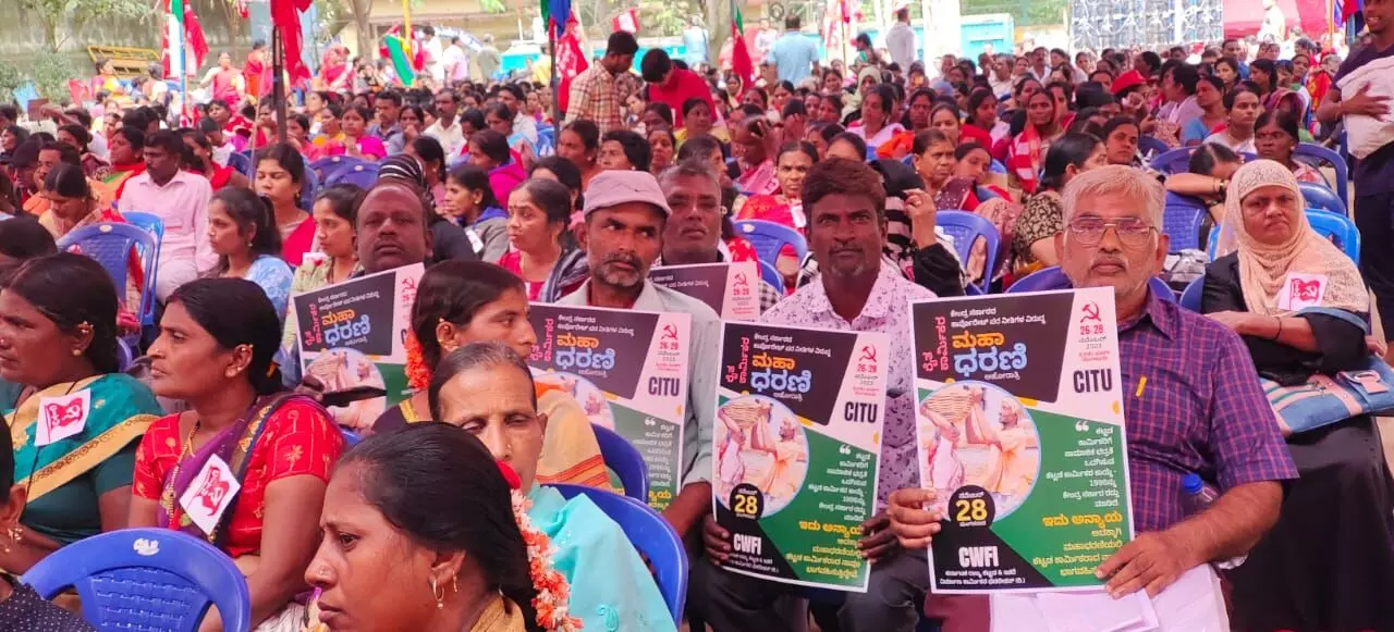 ಬೆಂಗಳೂರು: ನಗರದ ಫ್ರೀಡಂ ಪಾರ್ಕ್ನಲ್ಲಿ ಸಂಯುಕ್ತ ಕಿಸಾನ್ ಮೋರ್ಚ್ ಮತ್ತು ಕೇಂದ್ರ ಕಾರ್ಮಿಕ ಸಂಘಟನೆಗಳ ಜಂಟಿ ಸಮಿತಿ ಆಯೋಜಿಸಿದ್ದ ‘72 ಗಂಟೆಗಳು ದುಡಿಯುವ ಜನರ ಮಹಾ ಧರಣಿಯು ಮಂಗಳವಾರದಂದು ಅಂತ್ಯಗೊಂಡಿದ್ದು, 2024ರ ಲೋಕಸಭೆ ಚುನಾವಣೆಯಲ್ಲಿ ಕೋಮುವಾದಿಗಳನ್ನು ಸೋಲಿಸುವ ಕೆಲಸ ಈಗಿನಿಂದಲೇ ಪ್ರಾರಂಭಿಸಬೇಕು ಎಂದು ನಿರ್ಣಯ ಕೈಗೊಳ್ಳಲಾಯಿತು.