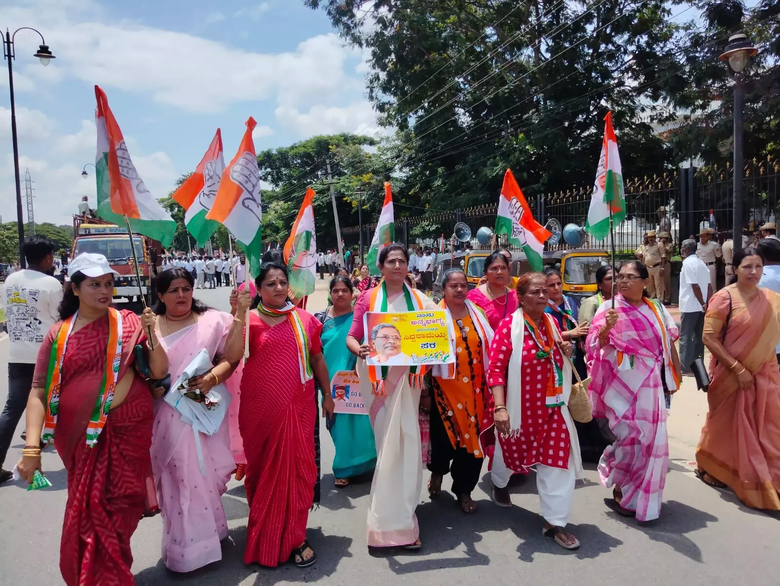 ಪ್ರತಿಭಟನೆಯಲ್ಲಿ ಕೆಪಿಸಿಸಿ ಕಾರ್ಯಧ್ಯಕ್ಷ ತನ್ವೀರ್ ಸೇಠ್, ಶಾಸಕರುಗಳಾದ ಅನಿಲ್ ಚಿಕ್ಕಮಾದು, ದರ್ಶನ್ ಧ್ರುವನಾರಾಯಣ, ಕೆ.ಹರೀಶ್ ಗೌಡ, ವಿಧಾನಪರಿಷತ್ ಸದಸ್ಯರಾದ ಡಾ.ಯತೀಂದ್ರ ಸಿದ್ಧರಾಮಯ್ಯ, ಡಾ.ಡಿ.ತಿಮ್ಮಯ್ಯ, ಮಾಜಿ ಸಚಿವೆ ಉಮಾಶ್ರೀ, ಗ್ಯಾರಂಟಿ ಯೋಜನೆಗಳ ಅನುಷ್ಠಾನ ಸಮಿತಿ ಉಪಾಧ್ಯಕ್ಷೆ ಡಾ.ಪುಷ್ಪಾ ಅಮರನಾಥ್, ಮುಡಾ ಅಧ್ಯಕ್ಷ ಕೆ.ಮರೀಗೌಡ, ಕೆಪಿಸಿಸಿ ವಕ್ತಾರ ಎಂ.ಲಕ್ಷ್ಮಣ್, ಸಂಯೋಜಕ ಎನ್.ಭಾಸ್ಕರ್, ನಗರ ಕಾಂಗ್ರೆಸ್ ಅಧ್ಯಕ್ಷ ಆರ್.ಮೂರ್ತಿ, ಜಿಲ್ಲಾಧ್ಯಕ್ಷ ಡಾ.ಬಿ.ಜೆ.ವಿಜಯಕುಮಾರ್, ಕರ್ನಾಟಕ ವಸ್ತು ಪ್ರದರ್ಶನ ಪ್ರಾಧಿಕಾರದ ಅಧ್ಯಕ್ಷ ಅಯೂಬ್ ಖಾನ್, ಮುಖಂಡರುಗಳಾದ ಶಿವಣ್ಣ, ಬಿ.ಎಂ.ರಾಮು, ಎಸ್.ಸಿ.ಬಸವರಾಜು, ಸೇರಿದಂತೆ ಸಾವಿರಾರು ಕಾರ್ಯಕರ್ತರು ಭಾಗವಹಿಸಿದ್ದರು.