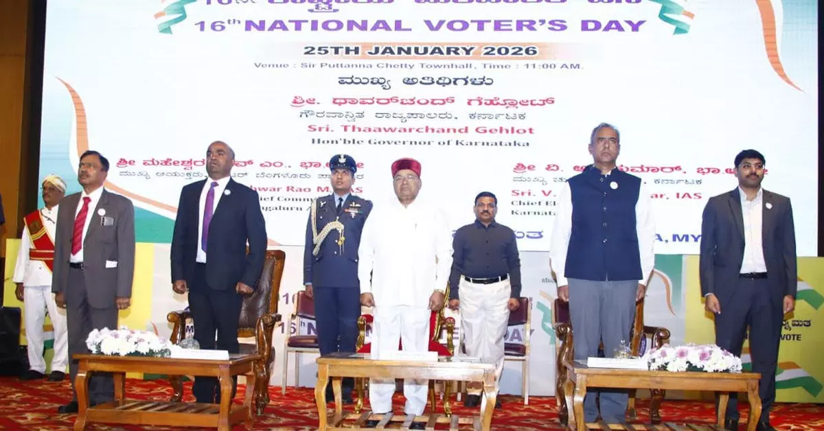 ರವಿವಾರ ಇಲ್ಲಿನ ಪುರಭವನದಲ್ಲಿ ಭಾರತ ಚುನಾವಣಾ ಆಯೋಗವು ಆಯೋಜಿಸಿದ್ದ ‘ರಾಷ್ಟ್ರೀಯ ಮತದಾರರ ದಿನಾಚರಣೆ-2026’ ಕಾರ್ಯಕ್ರಮದಲ್ಲಿ ಮಾತನಾಡಿದ ಅವರು, ಭಾರತದ ಪ್ರಜಾಪ್ರಭುತ್ವವು ಸಂವಿಧಾನದ ಆದರ್ಶಗಳು ಮತ್ತು ಚುನಾವಣೆಯಲ್ಲಿ ಪ್ರತಿಯೊಬ್ಬರು ಸಕ್ರಿಯ ಭಾಗವಹಿಸುವಿಕೆಯನ್ನು ಆಧರಿಸಿದೆ. ‘ಒಂದು ಮತ-ಒಂದು ಧ್ವನಿ-ಒಂದು ಜವಾಬ್ದಾರಿ’ ಇದು ಪ್ರಜಾಪ್ರಭುತ್ವದ ಆತ್ಮ ಎಂದರು.