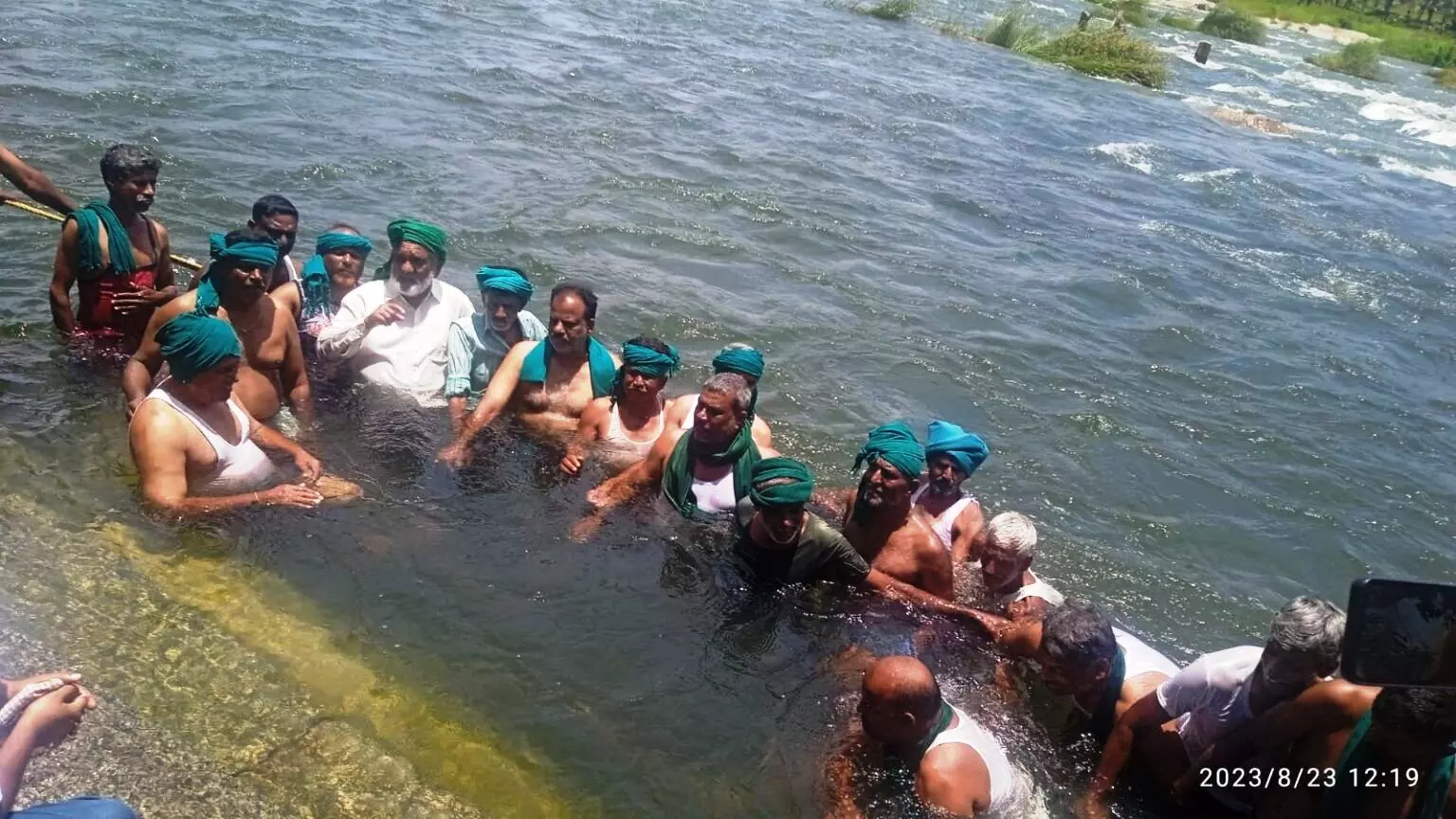 ಕೆ.ಎಸ್.ನಂಜುಂಡೇಗೌಡ, ಬಿ.ಸಿ.ಕೃಷ್ಣೇ ಗೌಡ, ಮೇಳಾಪುರ ಜಯರಾಮ, ಹನುಮಂತ ನಗರದ ಸ್ವಾಮಿ, ಹೊಸೂರಿನ ಶಿವರಾಜ್, ಹನಿಯಂಬಾಡಿ ನಾಗರಾಜ್, ಮಹದೇವ, ಹೊಸ ಉಂಡವಾಡಿ ಪುಟ್ಟೇಗೌಡ, ಪಾಲಹಳ್ಳಿ ರಾಮಚಂದ್ರ ಕೂಡ್ಲುಕುಪ್ಪೆ ಸ್ವಾಮಿಗೌಡ, ಇತರರು ನದಿಯಲ್ಲಿ ಪ್ರತಿಭಟನೆ ನಡೆಸಿ ಕೂಡಲೇ ತಮಿಳುನಾಡಿಗೆ ನೀರು ಹರಿಸುವುದನ್ನು ನಿಲ್ಲಿಸಬೇಕೆಂದು ಒತ್ತಾಯಿಸಿದರು.