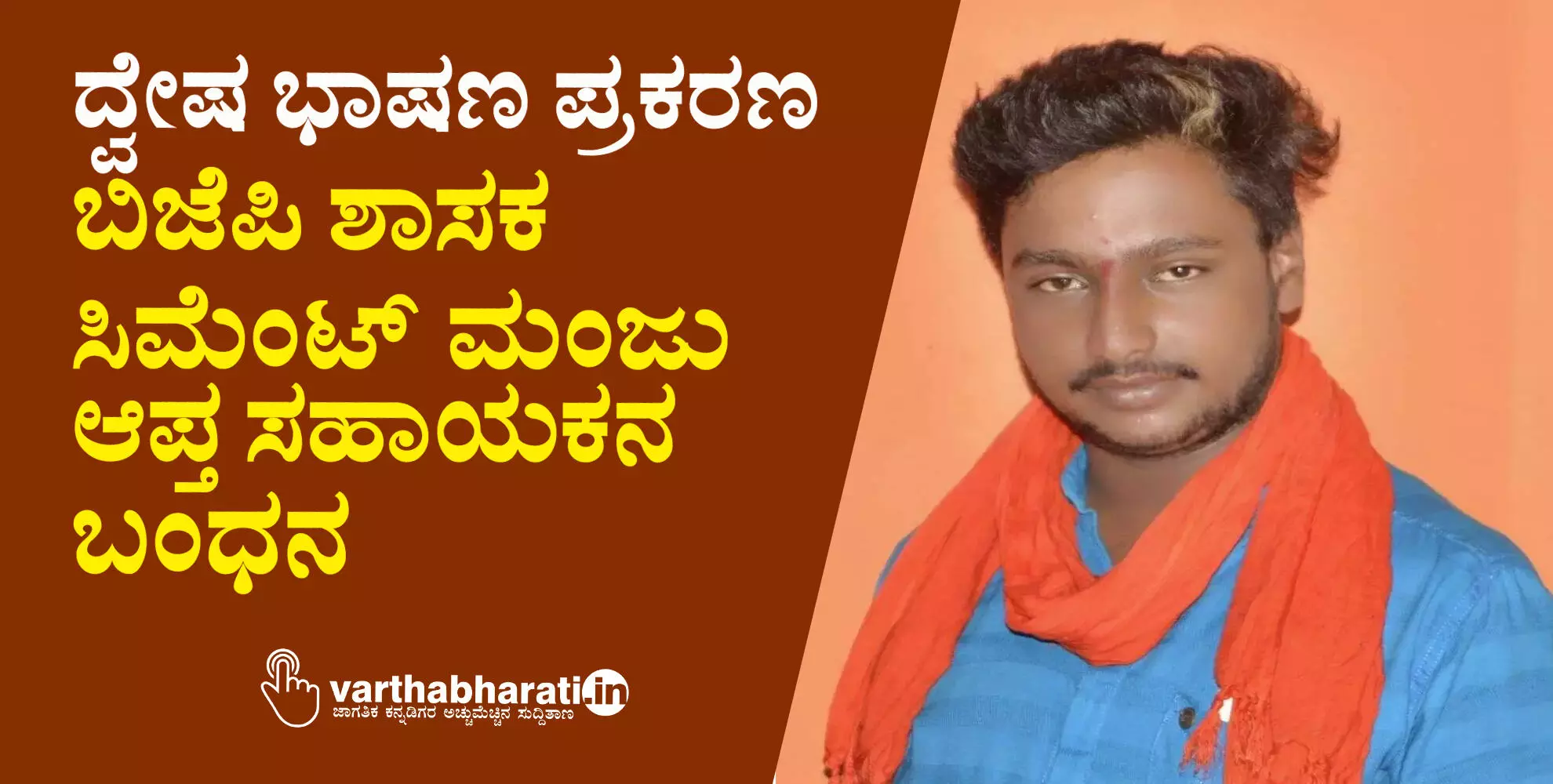 ದ್ವೇಷ ಭಾಷಣ ಪ್ರಕರಣ: ಬಿಜೆಪಿ ಶಾಸಕ ಸಿಮೆಂಟ್ ಮಂಜು ಆಪ್ತ ಸಹಾಯಕನ ಬಂಧನ