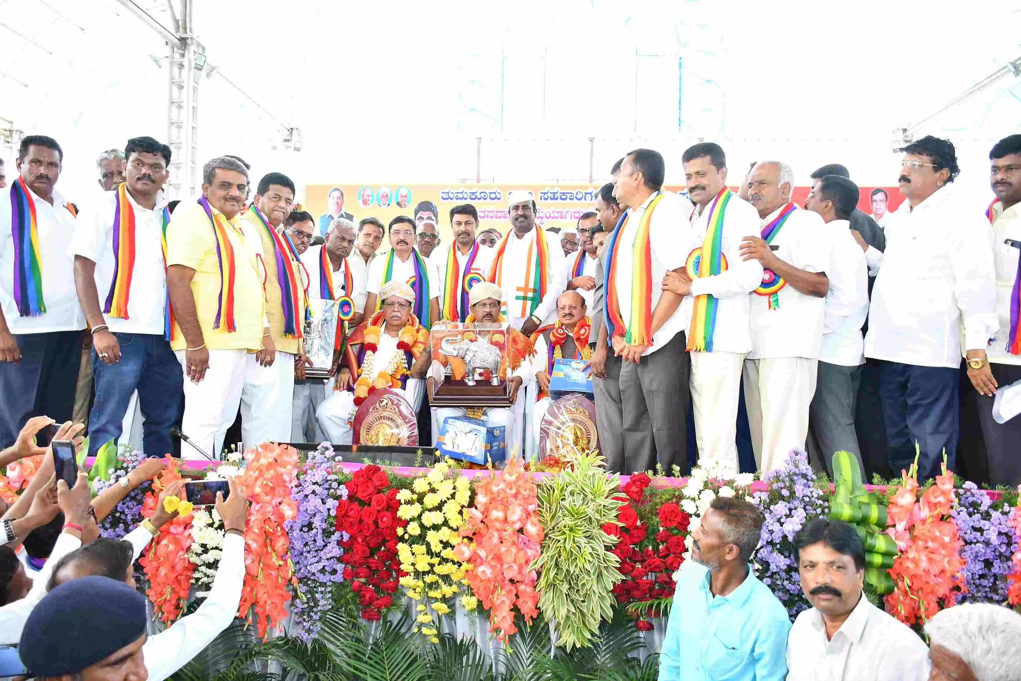 ಸಂಸದ ಜಿ.ಎಸ್.ಬಸವರಾಜು,ಪಿಕಾರ್ಡ್ ಬ್ಯಾಂಕುಗಳ ಅಧ್ಯಕ್ಷ ಹಾಗೂ ತಿಪಟೂರು ಶಾಸಕ ಕೆ.ಷಡಕ್ಷರಿ ಮಾತನಾಡಿ ದರು.ಕಾರ್ಯಕ್ರಮದ ಅಧ್ಯಕ್ಷತೆಯನ್ನು ಎನ್.ಎಸ್.ಜಯಕುಮಾರ್ ವಹಿಸಿದ್ದರು.ಸಚಿವರಾದ ಡಾ.ಜಿ.ಪರಮೇಶ್ವರ್, ಕೆ.ಎನ್. ರಾಜಣ್ಣ,ರಾಜ್ಯ ಸರಕಾರದ ದೆಹಲಿಯ ವಿಶೇಷ ಪ್ರತಿನಿಧಿ ಟಿ.ಬಿ.ಜಯಂದ್ರ,ಶಾಸಕರಾದ ಜೋತಿಗಣೇಶ್, ಹೆಚ್.ವಿ. ವೆಂಕಟೇಶ್, ಬಿ.ಸುರೇಶಗೌಡ ಅವರುಗಳನ್ನು ಅಭಿನಂದಿಸಲಾಯಿತು.ವೇದಿಕೆಯಲ್ಲಿ ಶ್ರೀಮತಿ ಶಾಂತಲ ರಾಜಣ್ಣ, ಮೇಯರ್ ಶ್ರೀಮತಿ ಪ್ರಭಾವತಿ,ಕೆ.ಎ.ದೇವರಾಜು,ಬಿ.ಜಿ.ವೆಂಕಟೇಗೌಡ,ತುಮಲ್ ಅಧ್ಯಕ್ಷ ಸಿ.ವಿ.ಮಹಲಿಂಗಯ್ಯ,ಸಹಕಾರ ಮಹಾಮಂಡ ಲದ ರಾಜ್ಯಾಧ್ಯಕ್ಷ ಗಂಗಣ್ಣ ಸೇರಿದಂತೆ ಹಲವರು ಉಪಸ್ಥಿತರಿದ್ದರು.