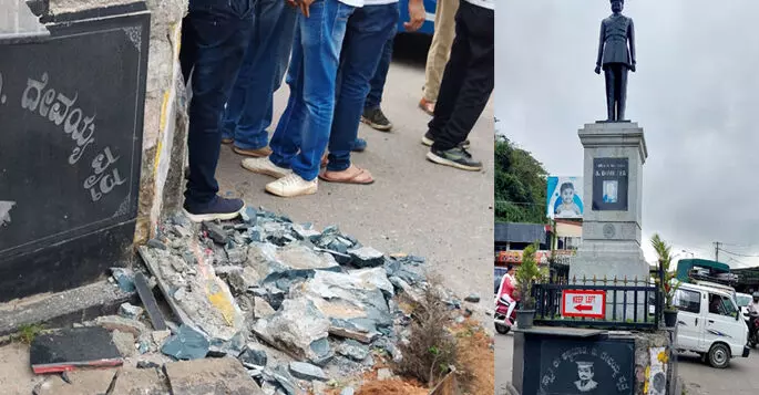 ಮಡಿಕೇರಿ | ಕೆಎಸ್ಸಾರ್ಟಿಸಿ ಬಸ್ ಢಿಕ್ಕಿ; ಸ್ಕ್ವಾಡ್ರನ್ ಲೀಡರ್ ಅಜ್ಜಮಾಡ ದೇವಯ್ಯ ವೃತ್ತಕ್ಕೆ ಹಾನಿ