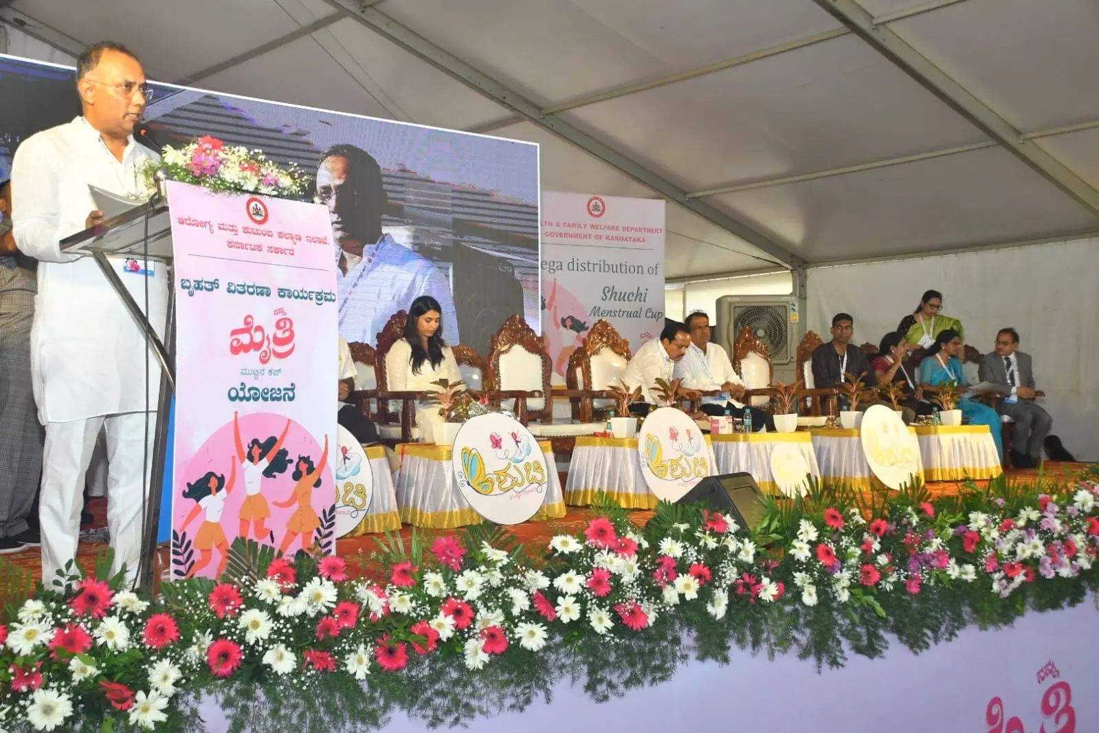 ಮಂಗಳೂರು: ಮೈತ್ರಿ ಮುಟ್ಟಿನ ಕಪ್ ಯೋಜನೆಯ ಬೃಹತ್ ವಿತರಣಾ ಕಾರ್ಯಕ್ರಮಕ್ಕೆ ಜಿಲ್ಲಾ ಆರೋಗ್ಯ ಮತ್ತು ಕುಟುಂಬ ಕಲ್ಯಾಣ ಸಚಿವರು ಹಾಗೂ ಉಸ್ತುವಾರಿ ಸಚಿವರಾದ ದಿನೇಶ್ ಗುಂಡೂರಾವ್ ಅವರು ಚಾಲನೆ ನೀಡಿದರು.