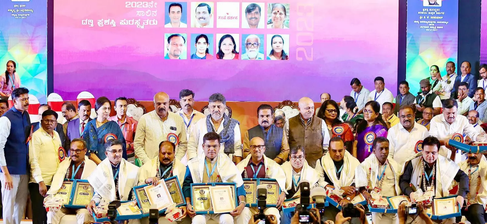 2023ನೆ ಸಾಲಿನ ಜೀವಮಾನದ ಸಾಧನೆಯ ವಿಶೇಷ ಪ್ರಶಸ್ತಿಗೆ ಹಿರಿಯ ಪತ್ರಕರ್ತ ಅ.ಚ.ಶಿವಣ್ಣ ಹಾಗೂ 2024ನೆ ಸಾಲಿನ ಜೀವಮಾನದ ಸಾಧನೆಯ ವಿಶೇಷ ಪ್ರಶಸ್ತಿಗೆ ಭಾಜನರಾದ ʼವಾರ್ತಾಭಾರತಿʼ ಪತ್ರಿಕೆಯ ಪ್ರಧಾನ ಸಂಪಾದಕ ಅಬ್ದುಸ್ಸಲಾಮ್ ಪುತ್ತಿಗೆ ಅವರಿಗೆ ಉಪಮುಖ್ಯಮಂತ್ರಿ ಡಿ.ಕೆ.ಶಿವಕುಮಾರ್ ಪ್ರಶಸ್ತಿಯನ್ನು ಪ್ರದಾನ ಮಾಡಿದ್ದಾರೆ.
