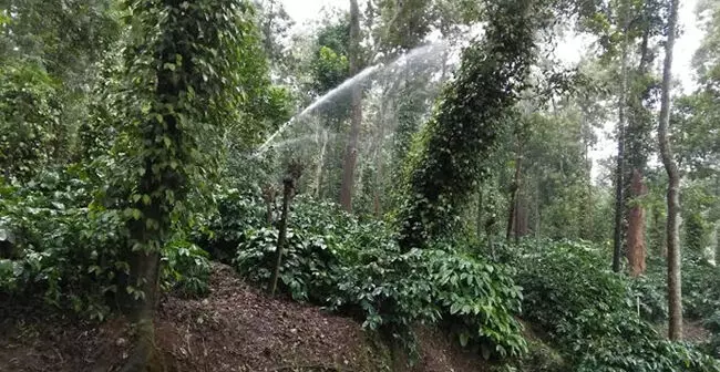 ಕಾವೇರಿನಾಡು ಕೊಡಗಿನಲ್ಲಿ ಮುಂಗಾರು ದುರ್ಬಲ; ಸ್ಪ್ರಿಂಕ್ಲರ್ಗಳ ಮೊರೆ ಹೋದ ಕಾಫಿ, ಕಾಳು ಮೆಣಸು ಬೆಳೆಗಾರರು
